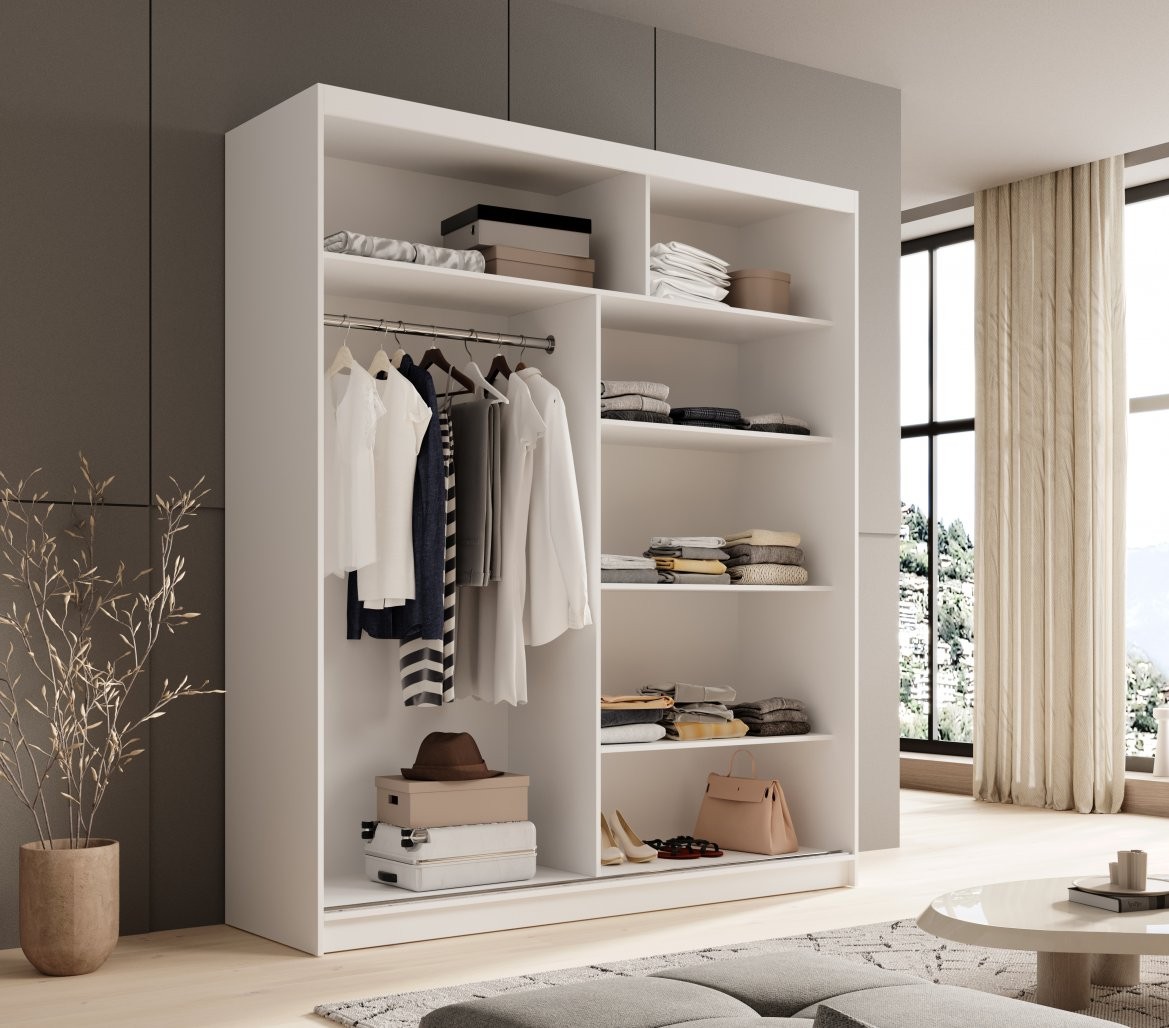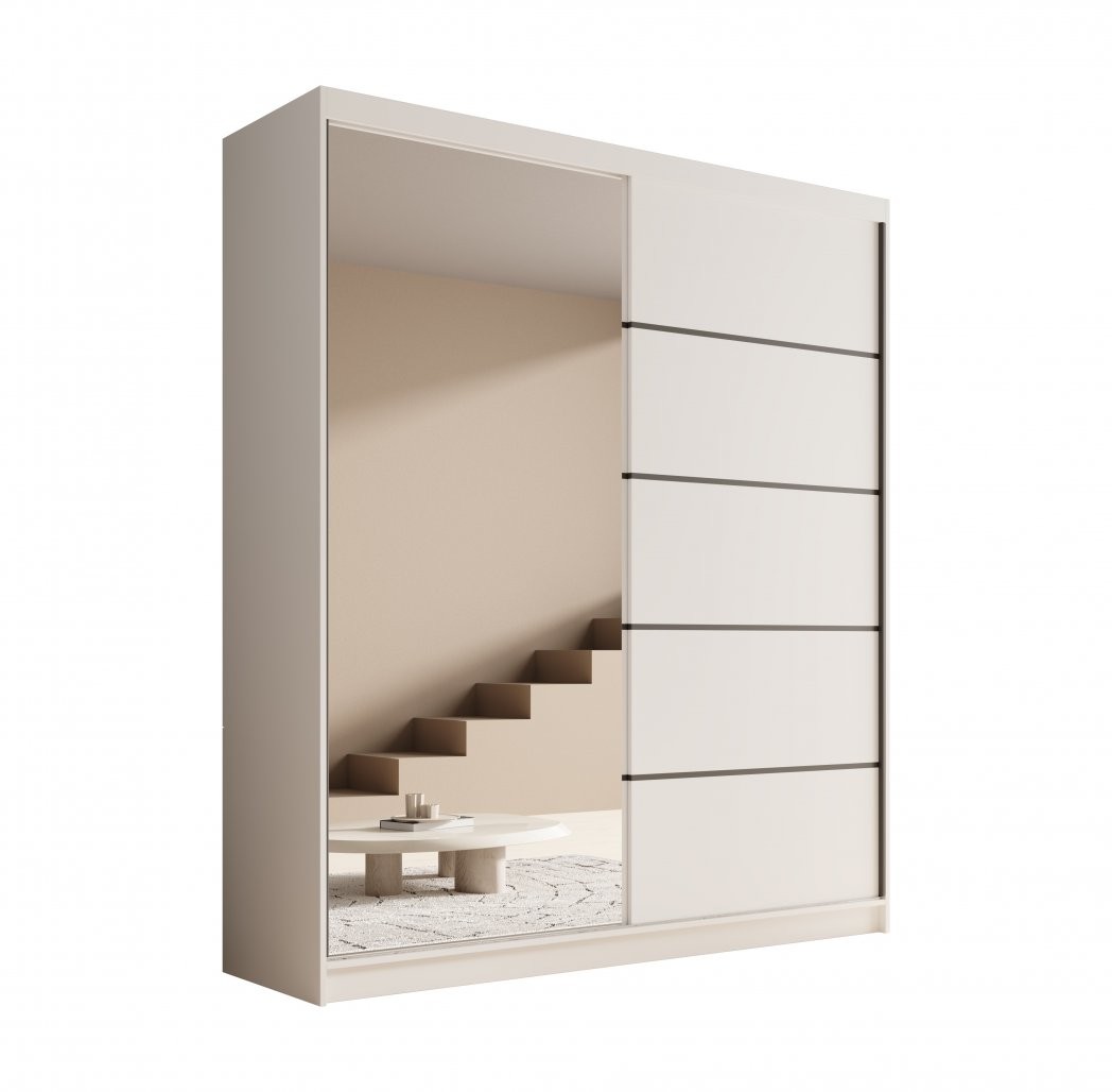 Ormar dolazi u više boja, što omogućuje lako uklapanje u različite stilove interijera. Ogledala na vratima vizualno povećavaju prostor i unose dodatnu svjetlost. Zahvaljujući kliznim vratima, idealan je za manje prostore gdje je važan svaki centimetar.