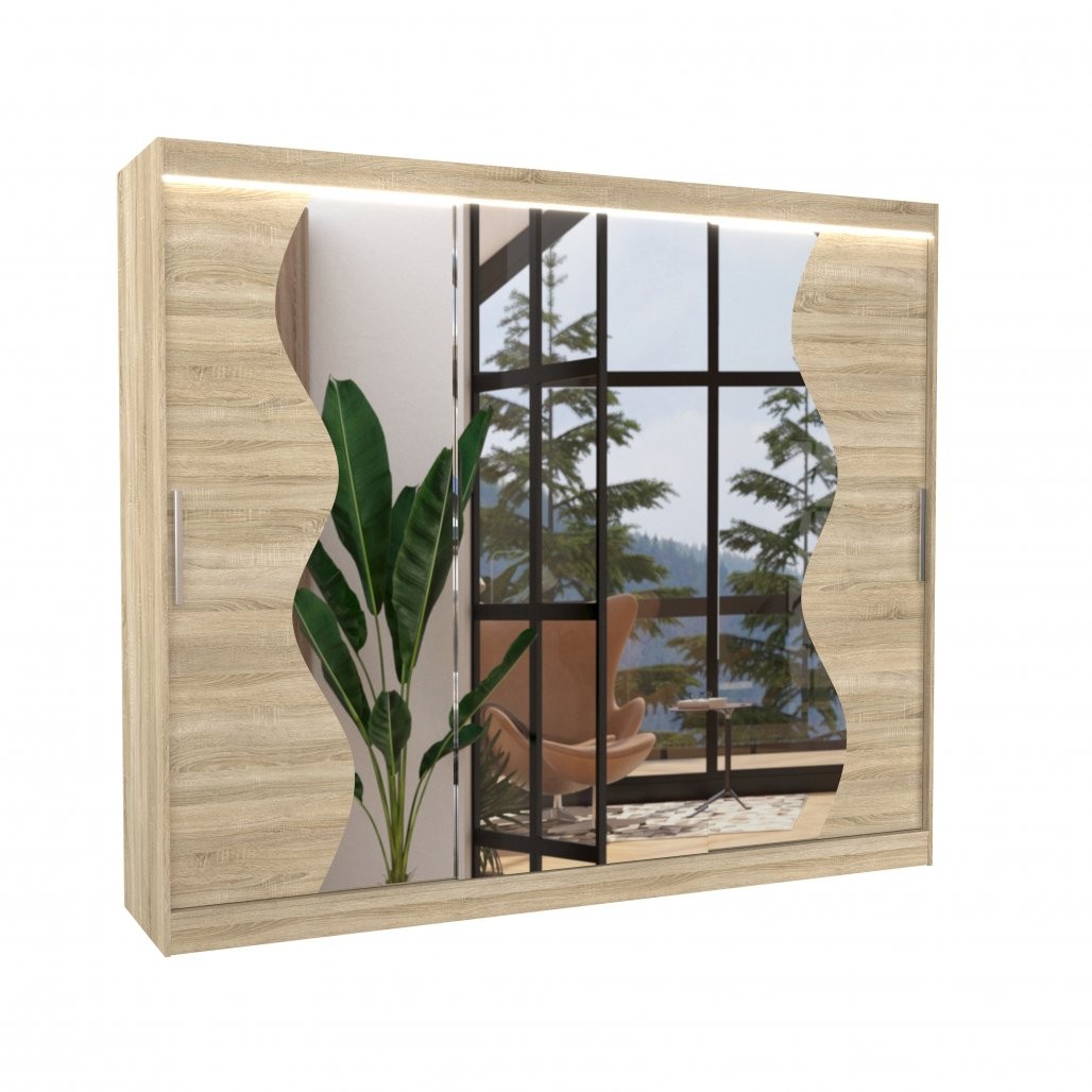 Klizni ormar s ogledalom SHARON 250 cm savršen je izbor za sve koji traže funkcionalno i estetski privlačno rješenje za pohranu odjeće i dodataka. S modernim dizajnom i praktičnim rasporedom unutrašnjosti, unijet će stil u svaki prostor i omogućiti optimalno iskorištavanje prostora.