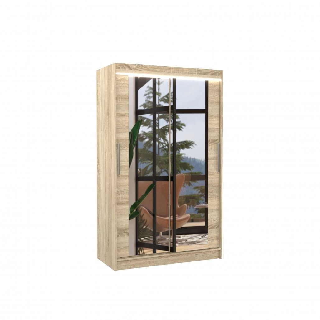 Klizni ormar s ogledalom TIBAGO 120 cm savršen je izbor za one koji traže funkcionalno i estetski privlačno rješenje za pohranu odjeće i dodataka. Zahvaljujući kliznim vratima, idealan je za manje prostore jer ne zahtijeva dodatni prostor za otvaranje.