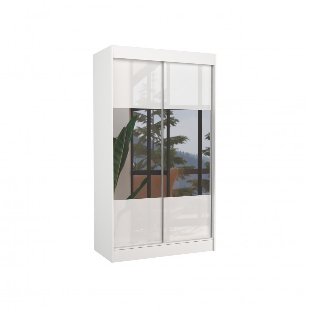 Klizni ormar TAMOS s ogledalom i staklom Lacobel 120 cm - BIJELA-LAKIRANA BIJELA, VISOKI SJAJ