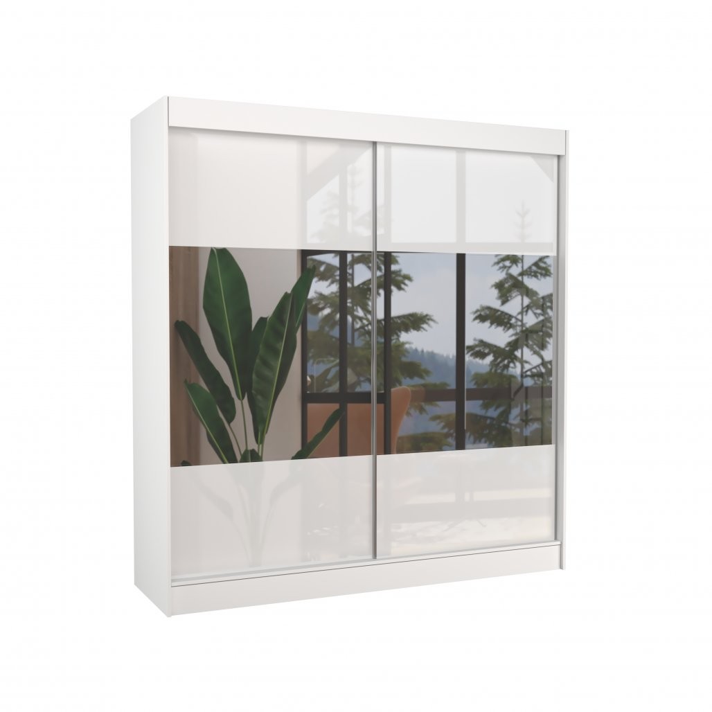 Klizni ormar TAMOS s ogledalom i staklom Lacobel 200 cm - BIJELA-LAKIRANA BIJELA, VISOKI SJAJ