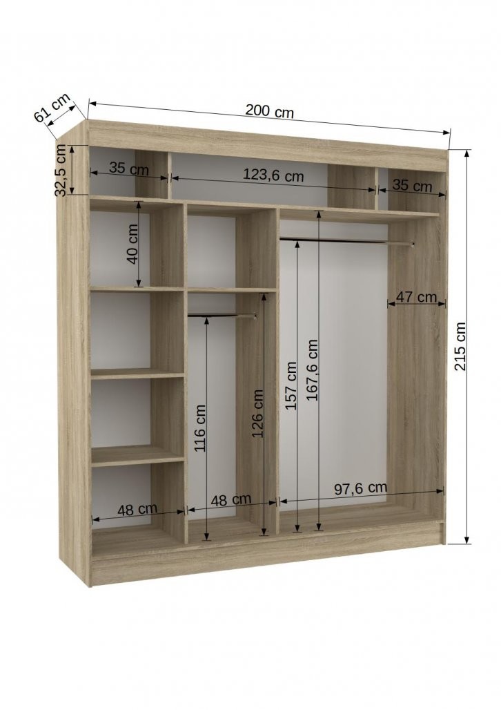 Elegantna ogledala i Lacobel staklo unose dozu sofisticiranosti, dok prostrane police i šipke omogućuju optimalno spremanje vaše odjeće.
