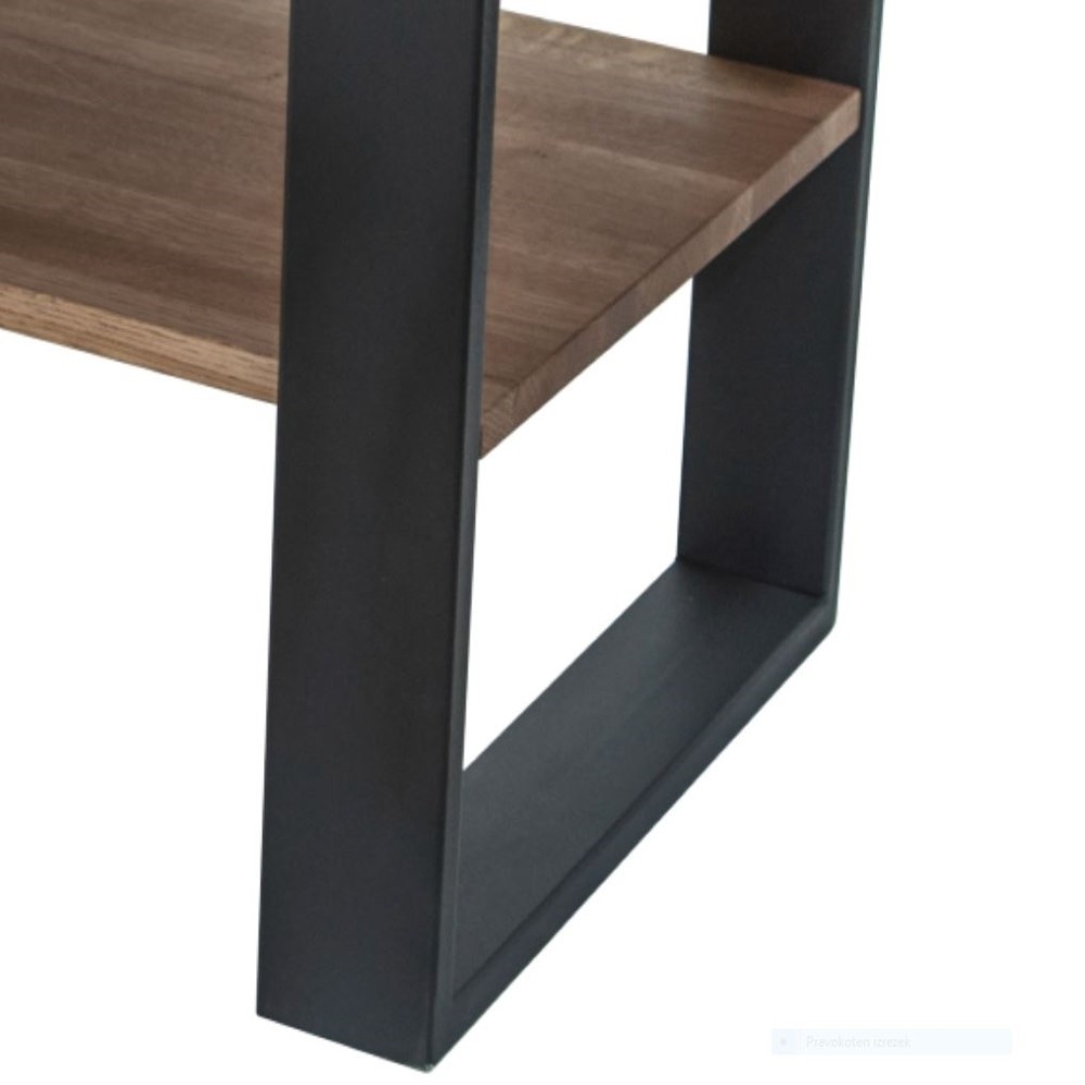 Masivni klub stolić KAINE učinit će svaki dnevni boravak robusnijim i modernijim. Izrađen je od dvije ploče od masivnog hrastovog drveta i crnog metalnog okvira, tako da će dugo ostati lijepo očuvan i neoštećen.