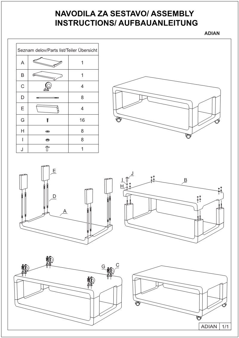 Jednostavni stolić ADIAN III iznenadit će vas svojim minimalističkim dizajnom i funkcionalnošću. Ovaj jednostavan bijeli stol visokog sjaja izrađen je od mediapan ploča debljine 3 cm. Također ima 4 kotača za bolju funkcionalnost i lakše kretanje po prostoriji.