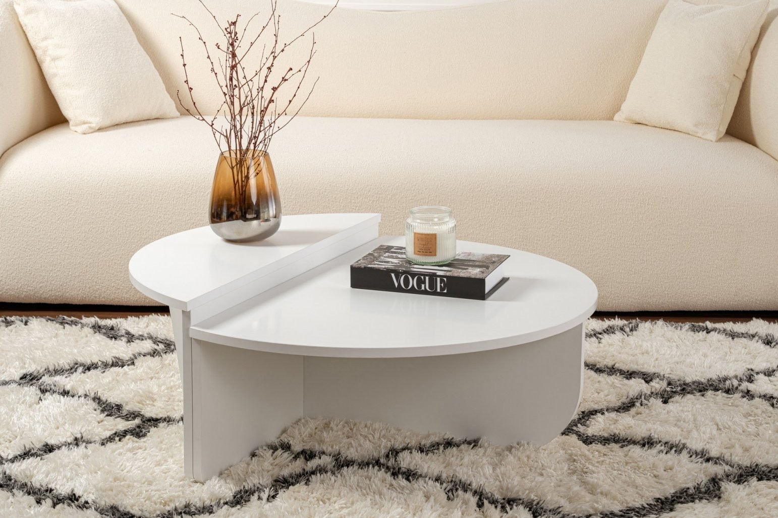 Izrađen od 100 % melaminom obložene iverice, stolić nije samo estetski privlačan već i izdržljiv. Bijela boja daje prostoru svježinu i lako se uklapa u različite stilove uređenja.
