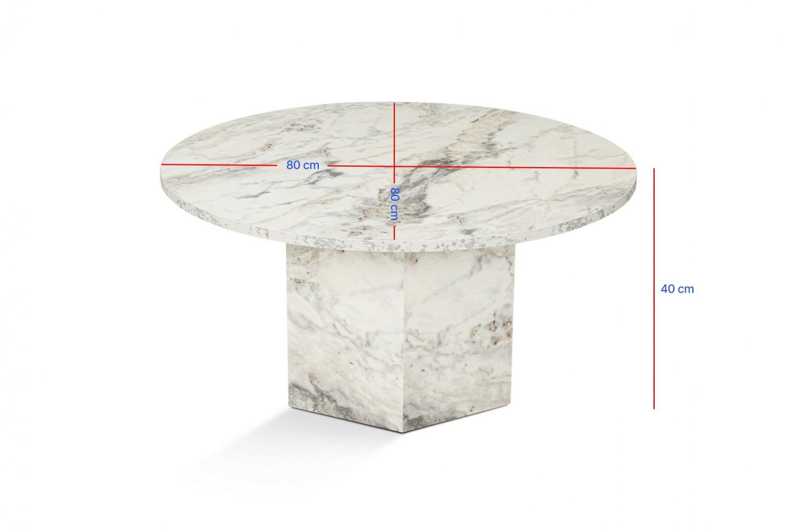 Stolić je izrađen od 100 % MDF-a s debljinom od 18 mm, što osigurava stabilnost i dugotrajnost. Dimenzije 80 cm širine, 40 cm visine i 80 cm dubine pružaju dovoljno prostora za piće, knjige i dekoracije.