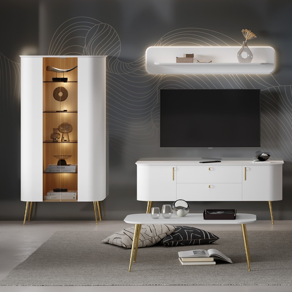 Kolekcija RADDA GALET odlikuje se visokim standardima u dizajnu. Zaobljene linije u kombinaciji sa zlatnim detaljima unose poseban karakter u vaš dnevni boravak i iznova oduševljavaju. Namijenjena je svima koji žele unijeti osjećaj mira i harmonije u svoj dom.