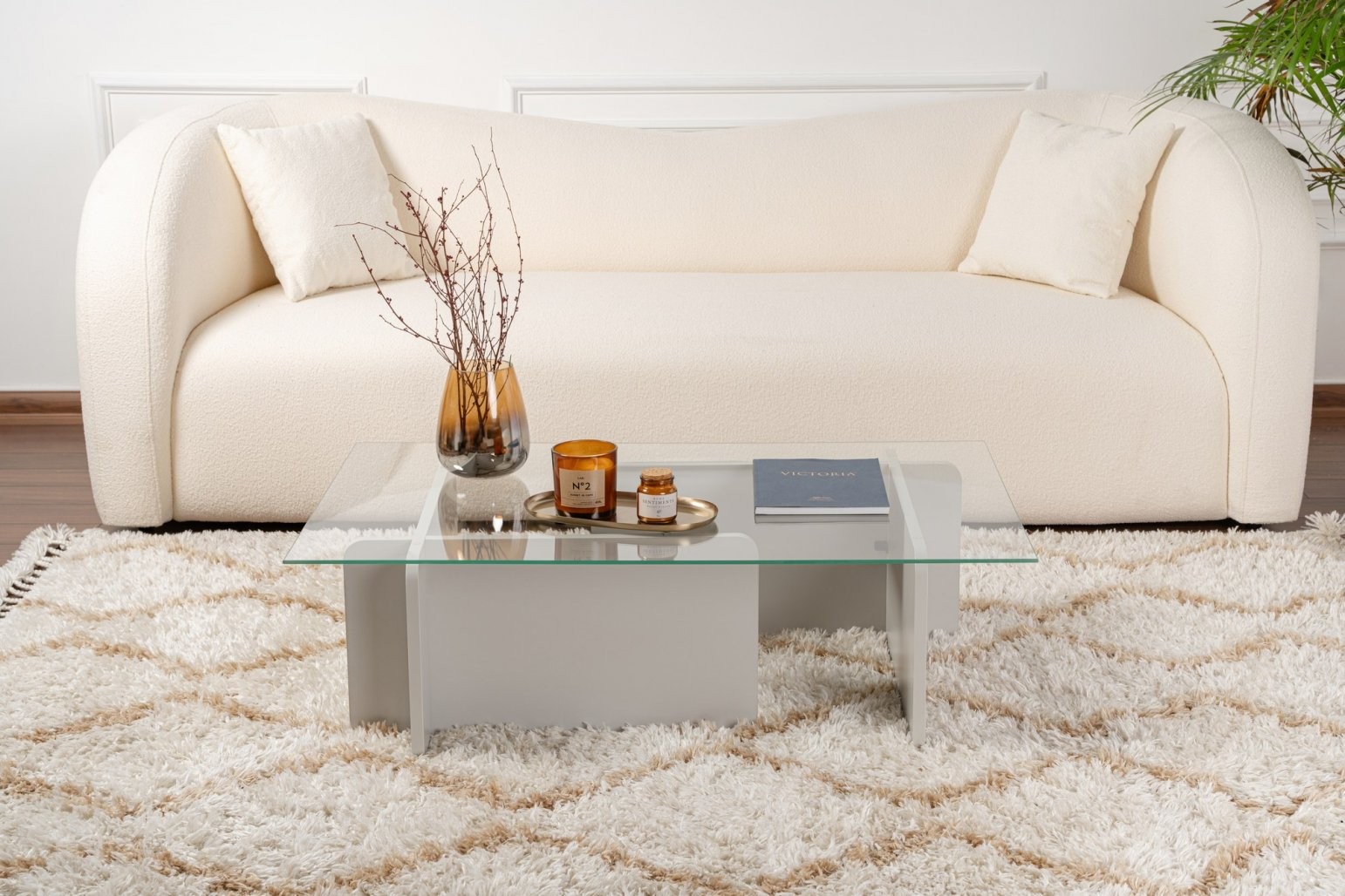 Izrađen u potpunosti od kaljenog stakla, ovaj klub stolić nije samo vizualno privlačan, već i izuzetno čvrst i dugotrajan. Okvir je napravljen od iverice obložene melaminom, što osigurava stabilnost i pouzdanost dugi niz godina.