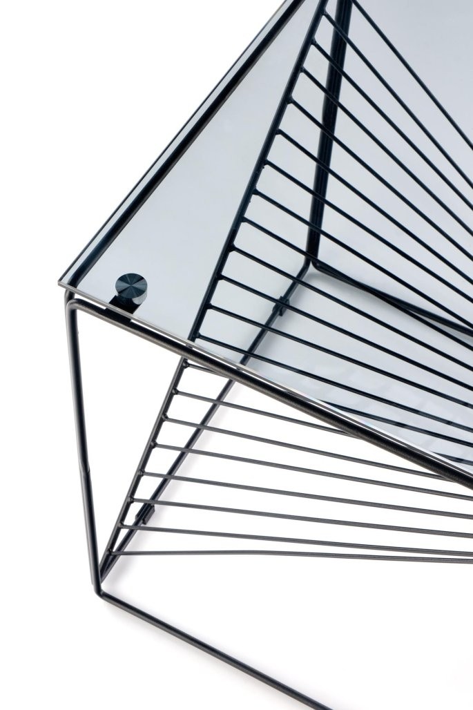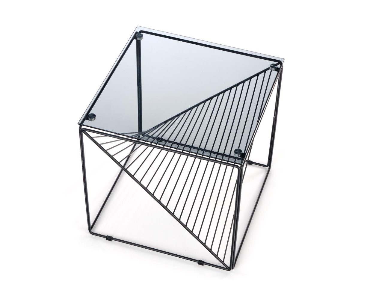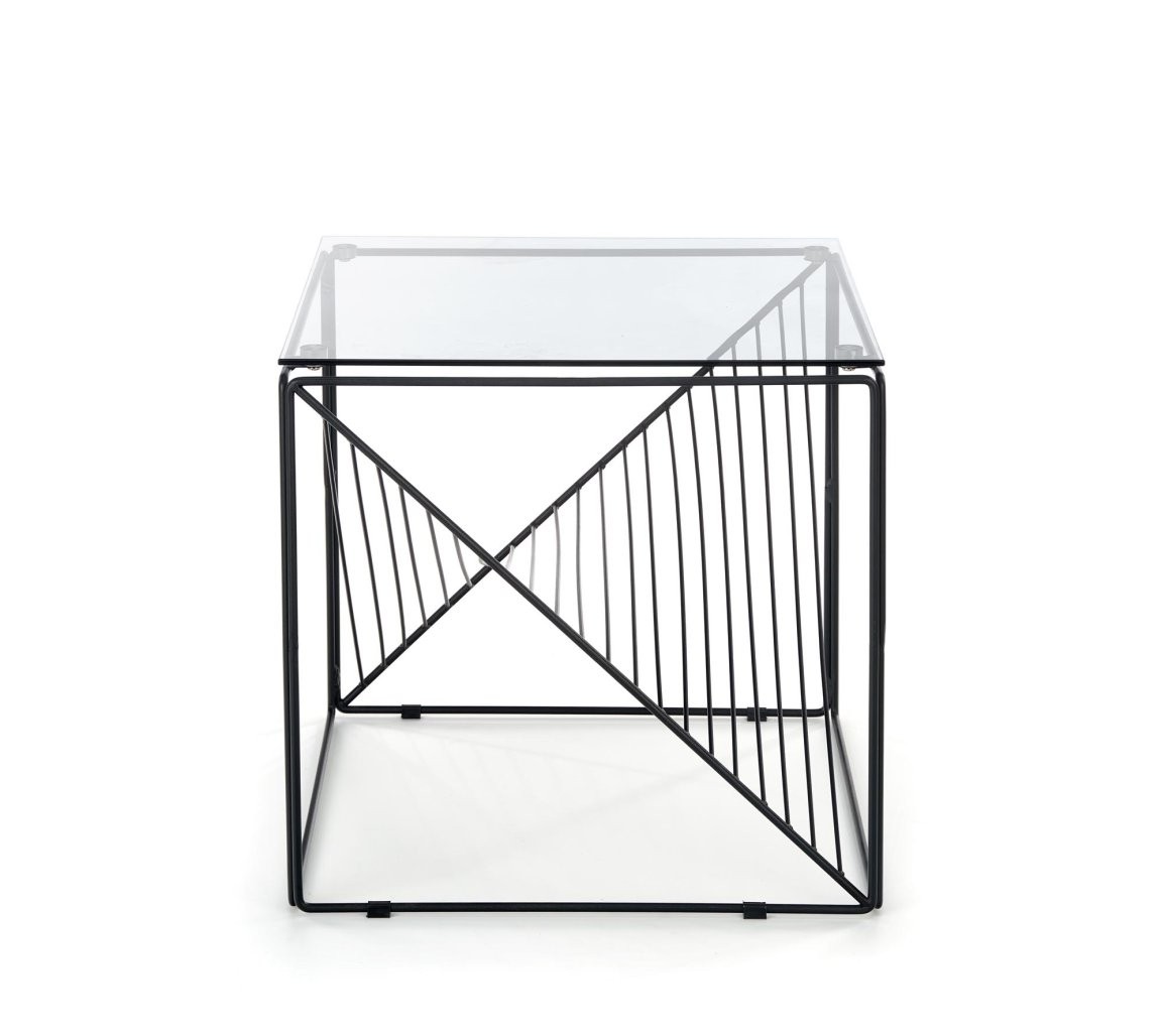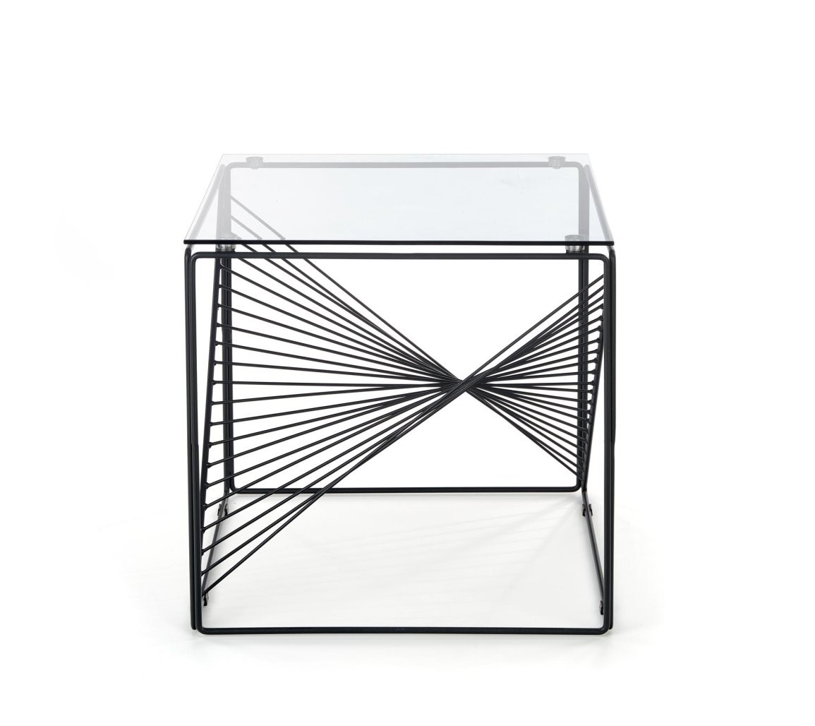 Klub stolić Baln u suvremenom i industrijski stilu sa staklenom kvadratnom površinom i praškasto lakiranim crnim metalnim nogama. Dimenzija 50 cm omogućava svestranu upotrebu u dnevnom boravku.