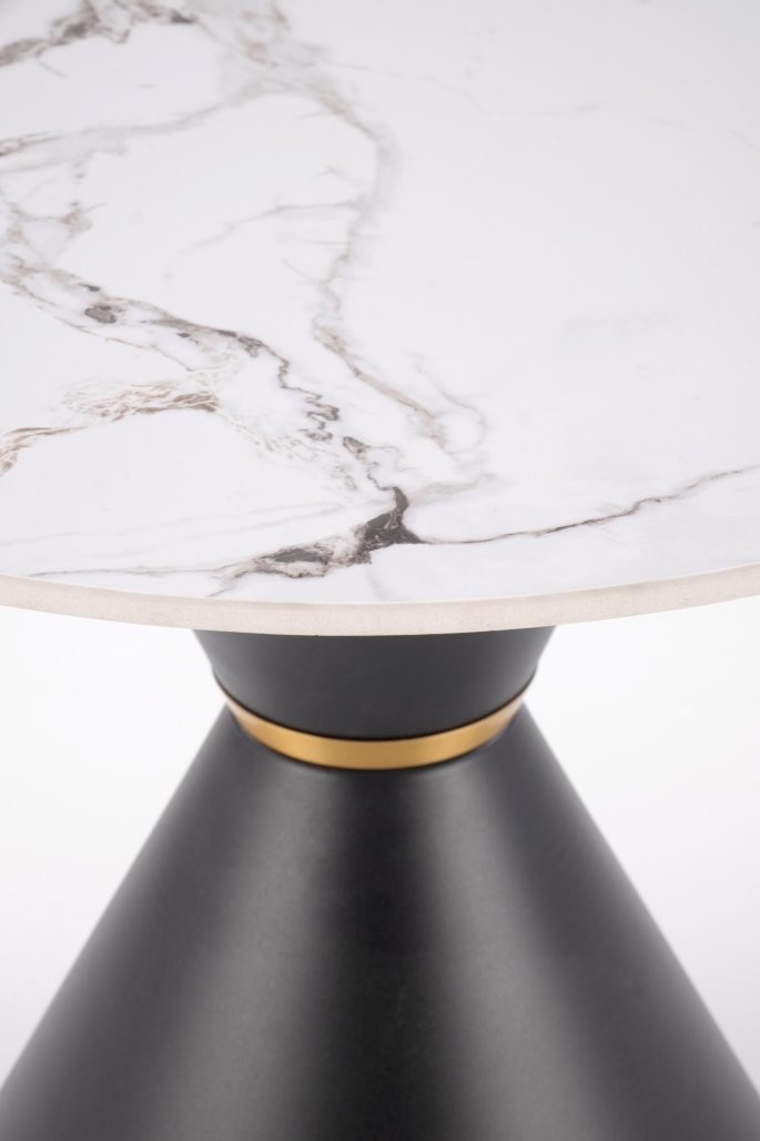 Klub stolić Berlinor od bijelog mramora s crnim i zlatnim detaljima je prikladna za manje prostore ili kao dodatak većem stolu. Elegantni dizajn podiže estetsku razinu prostora.