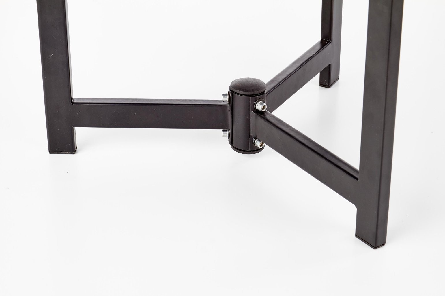 Klub stol Brial, set od dva stola s okruglom staklenom površinom s efektom kamena. Modernog dizajna s metalnim okvirom u crnoj boji, prikladan za industrijski stil.