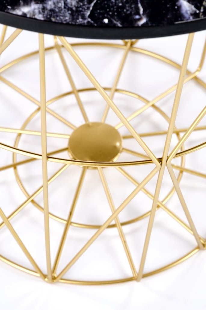Klub stol Coran s crnom pločom od mramora i zlatnim okvirom elegantan je izbor za suvremene i prestižne interijere.