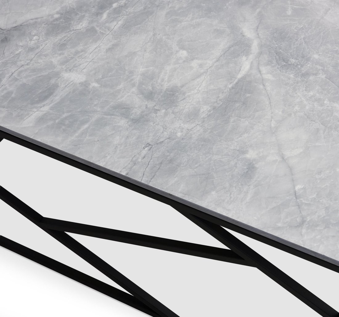 Klub stolić Elnar sa sivom mramornom površinom od sinter kamena i crnim okvirom od čelika u prahu donosi estetiku industrijskia u svaki dom. Dimenzije 120 x 60 x 45 cm stvaraju elegantan i praktičan prostor za odlaganje.