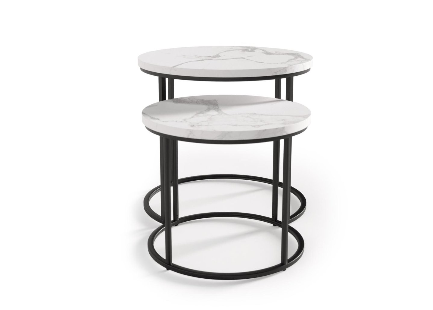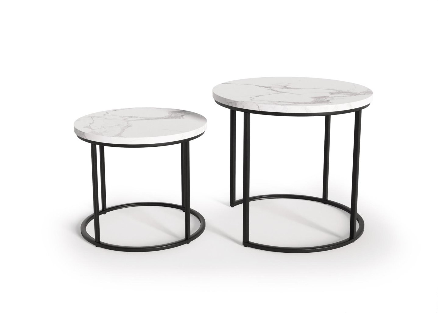 Klub stolić Garn u setu od dva stola, koji donosi suvremeni i industrijski stil u prostor. Stolovi od MDF-a s laminiranom površinom, dostupni u više boja, poput bijele, hrastove, zlatnog hrasta, oraha i crne boje.
