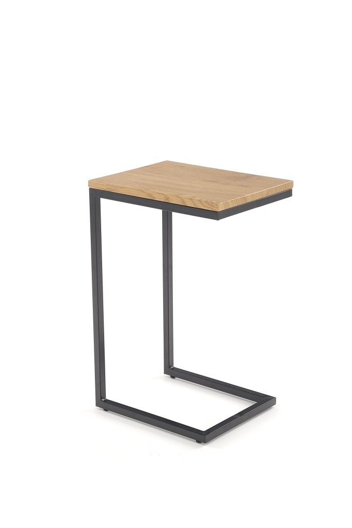Klub stolić Gino u skandinavskom i industrijski stilu, izrađen od laminiranog MDF-a i praškasto lakiranog čelika. Kombinacija zlatne hrastove boje i crnog okvira stvara moderan i topao izgled, pogodan za dnevne sobe.