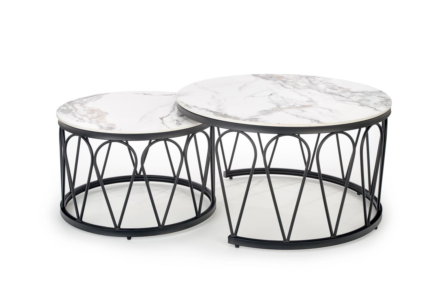 Klub stolić Jamor s pločom od sintranog kamena u izgledu bijelog mramora i crnim metalnim okvirom je elegantan i izdržljiv. Komplet od dva stola različitih dimenzija pruža prilagodljivost u svakom prostoru, a svojim modernim dizajnom savršeno pristaje uz svaki dekor.