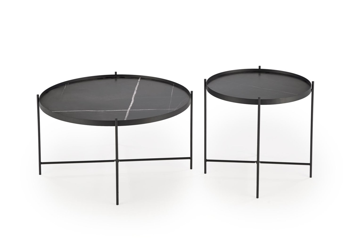 Set od dva klub stola Jarvis s elegantnim crnim metalnim okvirom i melaminskom MDF pločom u imitaciji crnog mramora. Moderan dizajn za svaki prostor.