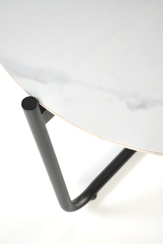 Klub stolić Jorlis od sinteriranog kamena i crnih metalnih nogu s modernim izgledom i bijelim mramornim uzorkom. Donosi trendovski izgled u svaki suvremeni ili industrijski prostor.