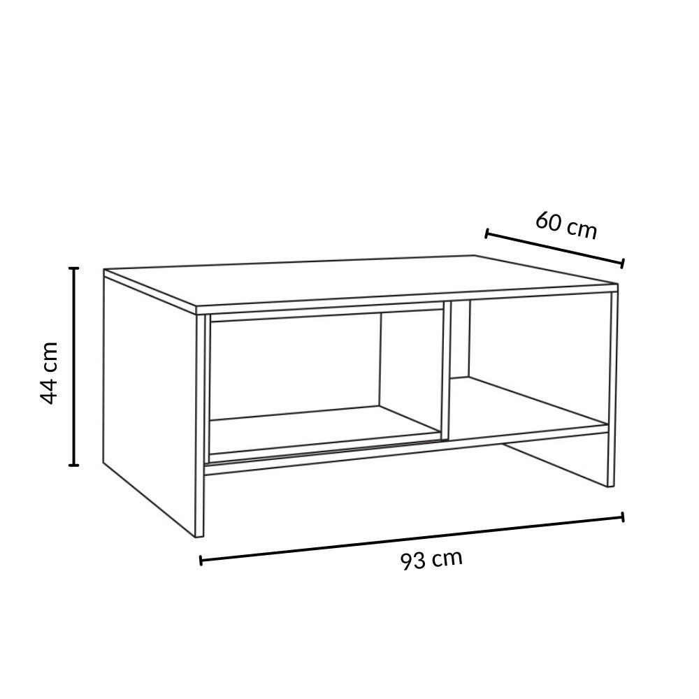 Moderna klubska mizica KARINA ima manjšo omarico, ki se odpira iz obeh strani in v katero lahko pospravite razne malenkosti, ter tako ohranite bolj čisto in organizirano dnevno sobo. Na poličko pa lahko odložite razne revije, časopise in knjige za goste. Na voljo je v kombinaciji elegantne bele barve in zlatega hrasta, ki se z lahkoto kombinirata z ostalimi barvami v vaši dnevni sobi!