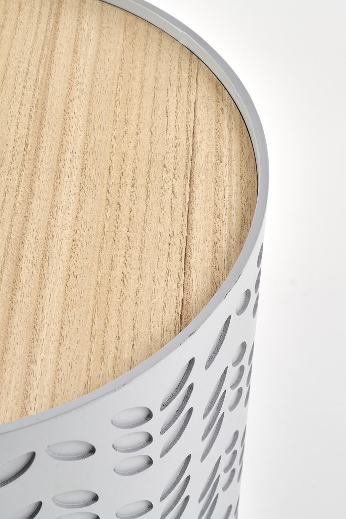 Set od dva klub stolića Karis u skandinavskom stilu spaja bijeli i sivi MDF s toplim izgledom prirodnog drveta. Praktično i stilsko rješenje za dodatnu pohranu i jednostavan dizajn.