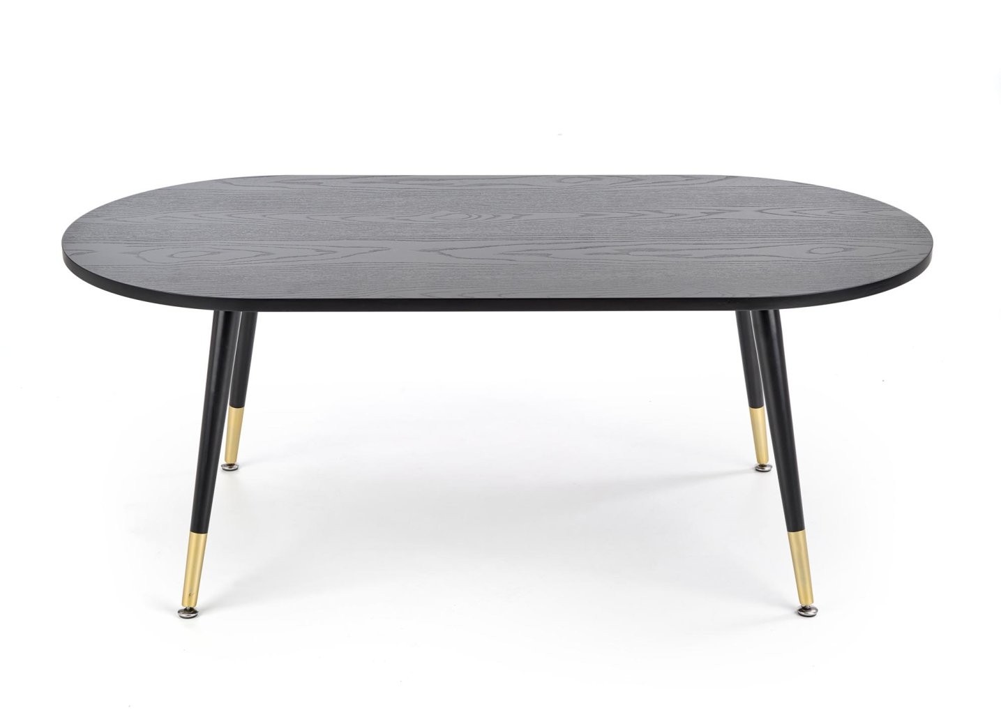 Klub stolić Noram u klasično prestižnom stilu, ovalni stol od lakiranog MDF-a i metalnih crno-zlatnih nogu. Visina 47 cm.