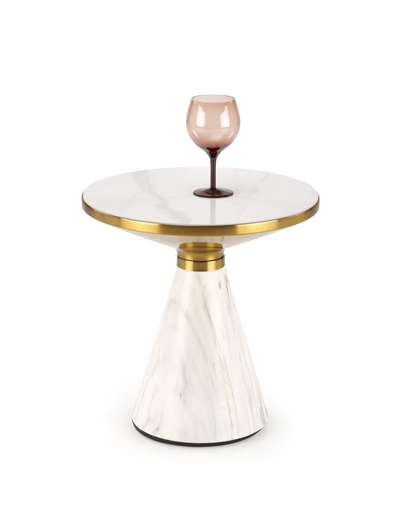 Klub stolić Olarin, suvremeni i elegantan izbor s pločom od bijelog mramora i zlatnim okvirom. Elegantni dodatak za svaku dnevnu sobu.