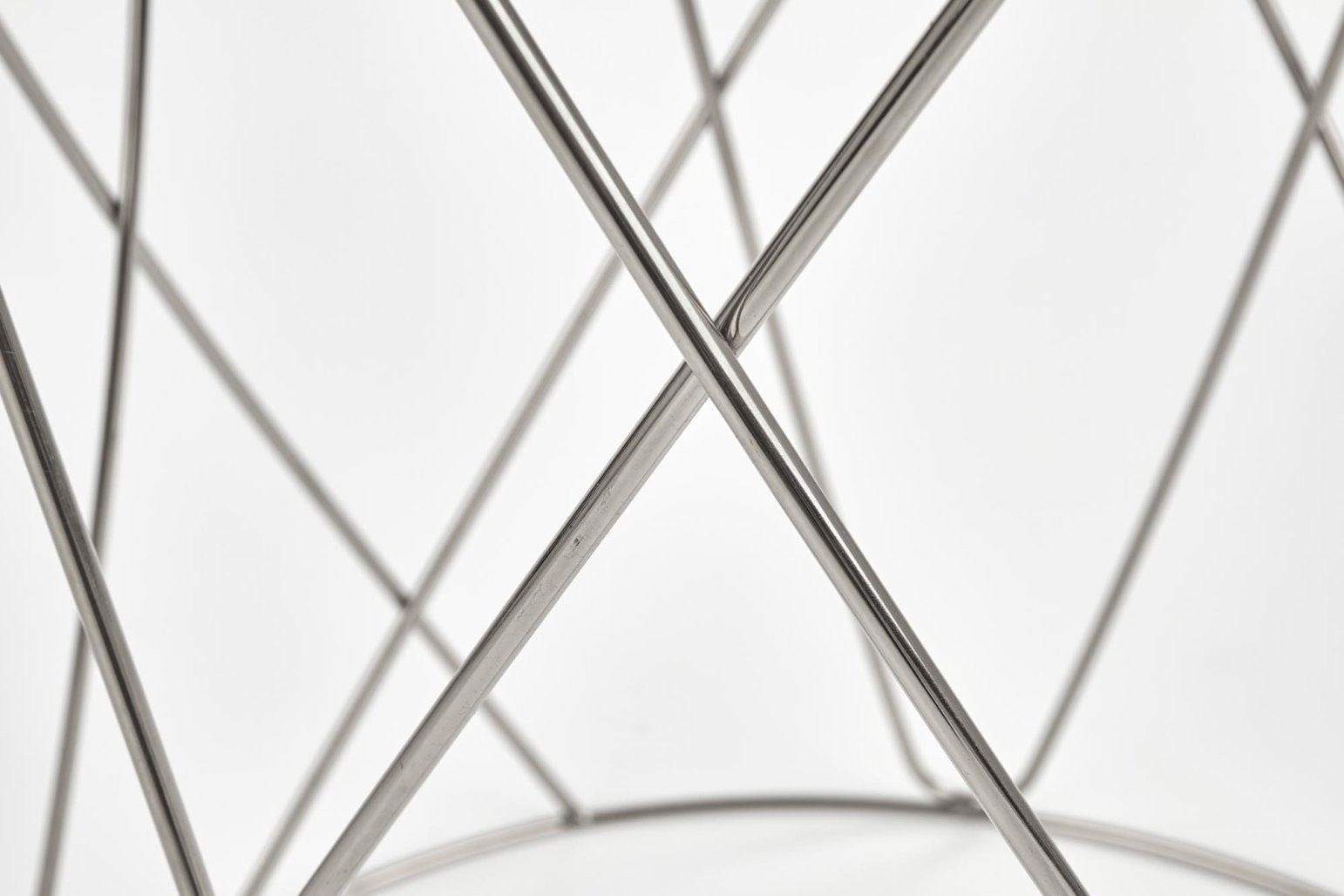 Klub stolić Velon dostupan je u krom ili zlatnoj boji, s okruglom staklenom površinom i nehrđajućim čeličnim okvirom, koji donosi dašak modernosti i prestiža.