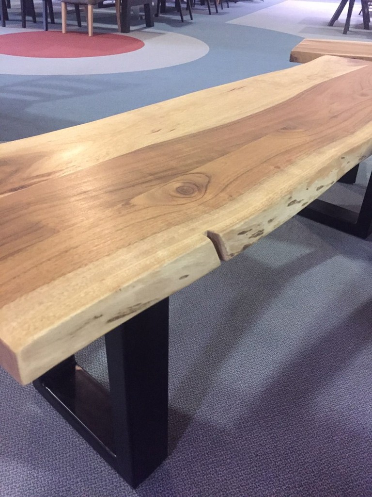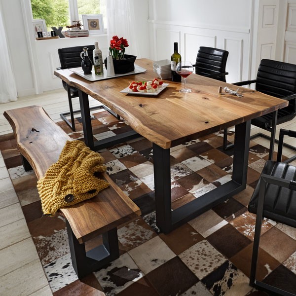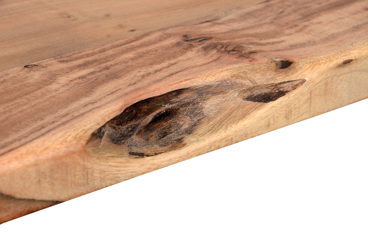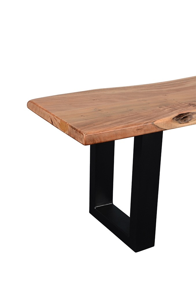 Klupa NIZANA II STRONG je blagovaonska klupa iz masivnog drva akacije. Klupa ima poseban i zanimljiv izgled zbog neravnog ruba na ploči za sjedenje. Crno postolje je napravljeno iz metala. Birati možete između četiri dimenzije klupa.