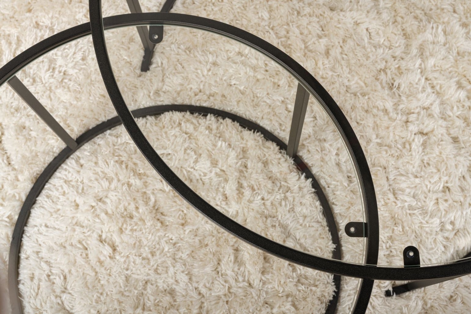 Izrađen s pažnjom i preciznošću, ovaj set klubskih stolića dizajniran je za dugotrajnu upotrebu. Kaljeno staklo debljine 4 mm otporno je na lomove, dok metalni okvir debljine 1,5 mm osigurava stabilnost i potporu. Dekorativne noge dodaju dodatnu dozu elegancije.