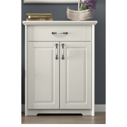 Jednostavna višenamjenska bijela komoda praktična je i svestrana s puno prostora za pohranu. Omogućuje vam pohranjivanje cipela, nakita, časopisa, odjeće i još mnogo toga. Zbog svog minimalističkog dizajna, komoda se lako uklapa u svaki hodnik, dnevni boravak, spavaću sobu ili ured. Dodatna prednost ove komode su rotirajući kotačići koji vam omogućuju jednostavno pomicanje komode pa će uvijek biti točno tamo gdje vam se najviše sviđa. Ormarić i ladice se otvaraju kromiranim ručkama. Kotači su okretni i sivi.