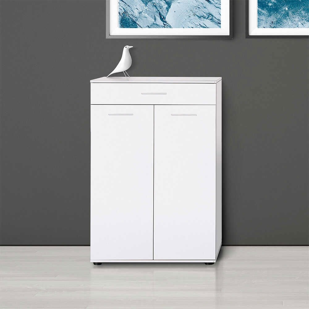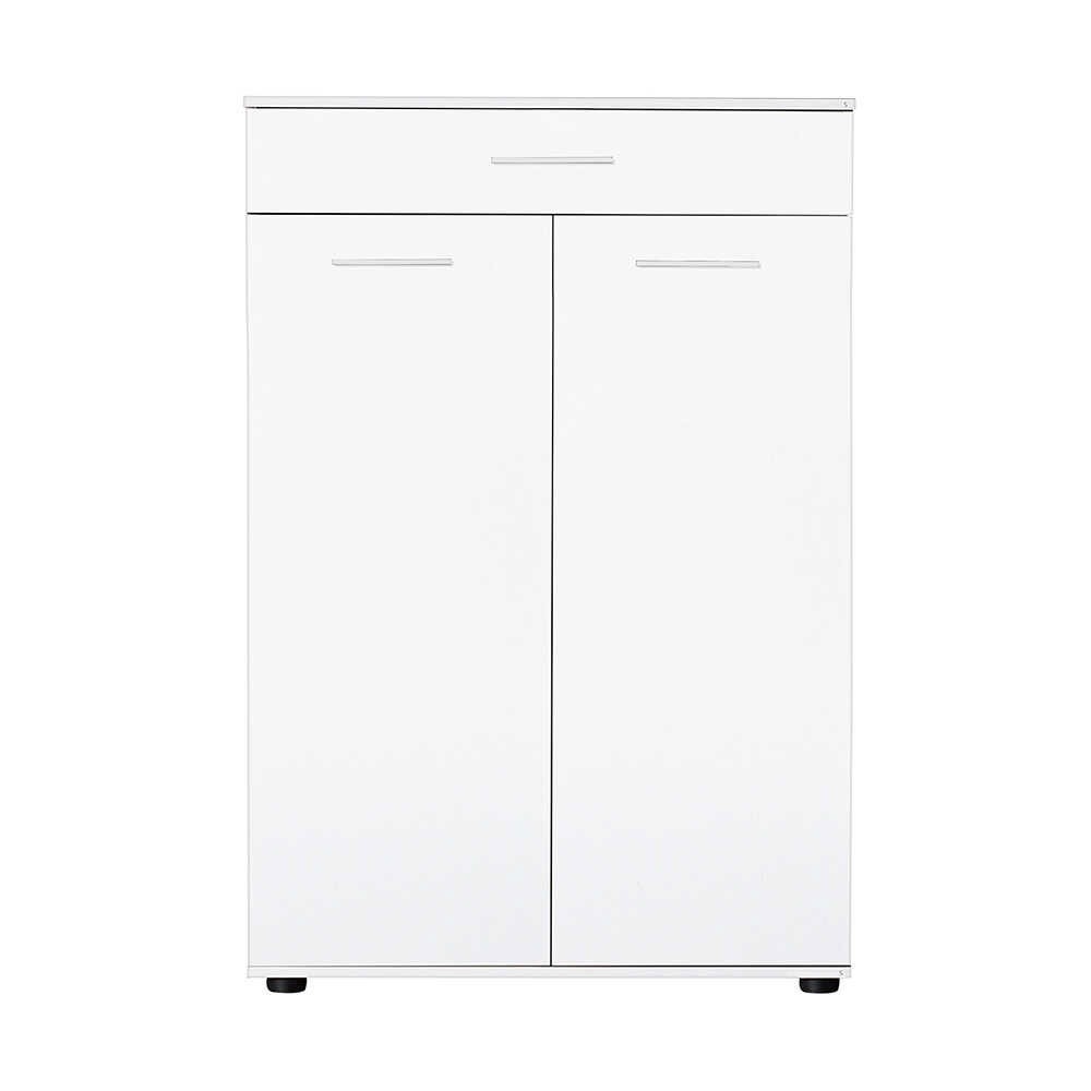Jednostavna i praktična komoda dostupna je u bijeloj boji koja će oživjeti vaš hodnik. Komoda ima puno prostora za pohranu, što će vam olakšati odlaganje cipela i ostalih predmeta po vašem domu. Komoda Adron 521 nudi dovoljno prostora za pohranu cipela na donjim policama te nakita i ostalih sitnica u maloj gornjoj ladici. Komoda ima veliki prostor s četiri police i jednom širokom ladicom na vrhu. Oslonjena je na četiri okrugle nogice, dvokrilna vrata se otvaraju prema van, a ručke su metalne.