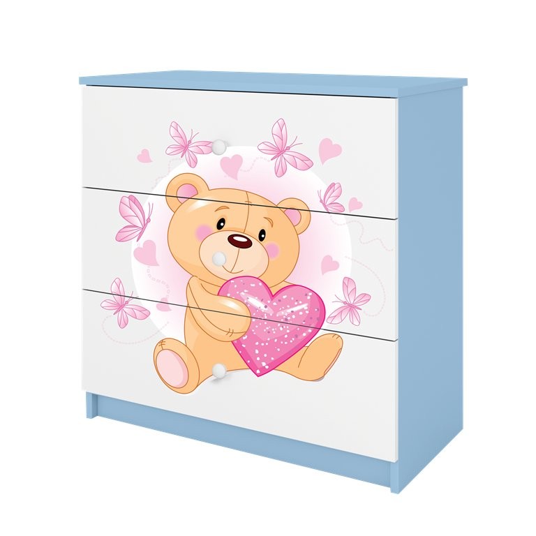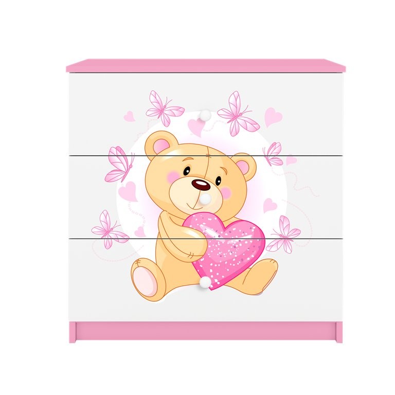 Komoda Dreamy medvjedić 2 (više boja) praktičan je komad dječjeg namještaja koji omogućuje urednu pohranu i u dječju sobu unosi razigrani motiv. Dostupna je u više boja, što omogućuje lakšu prilagodbu prostoru. Izrađena je od oplemenjene iverne ploče koja osigurava stabilnu i pouzdanu upotrebu.
