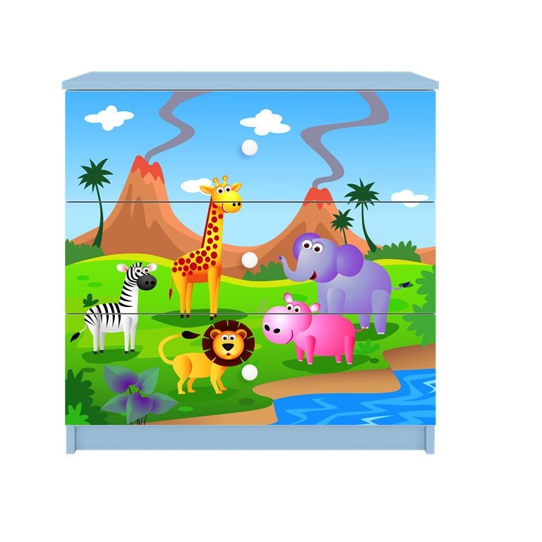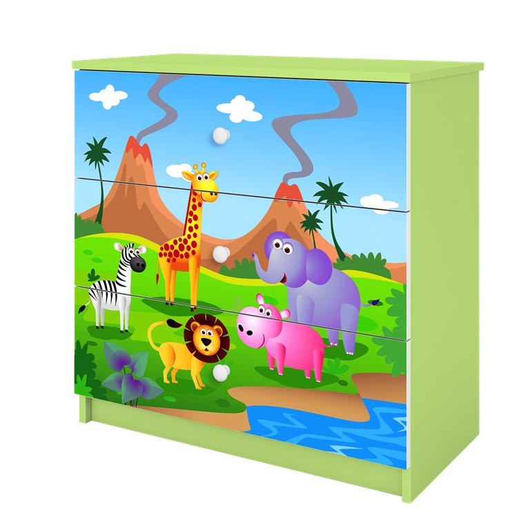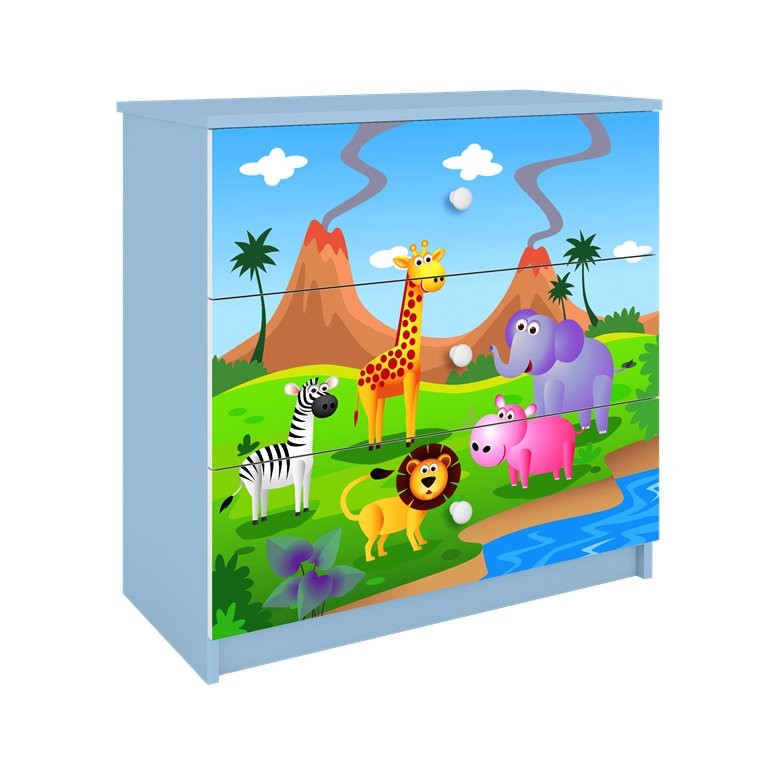 Komoda Dreamy safari (više boja) praktičan je komad dječjeg namještaja koji omogućuje urednu pohranu i u dječju sobu unosi razigrani motiv. Dostupna je u više boja, što omogućuje lakšu prilagodbu prostoru. Izrađena je od oplemenjene iverne ploče koja osigurava stabilnu i pouzdanu upotrebu.
