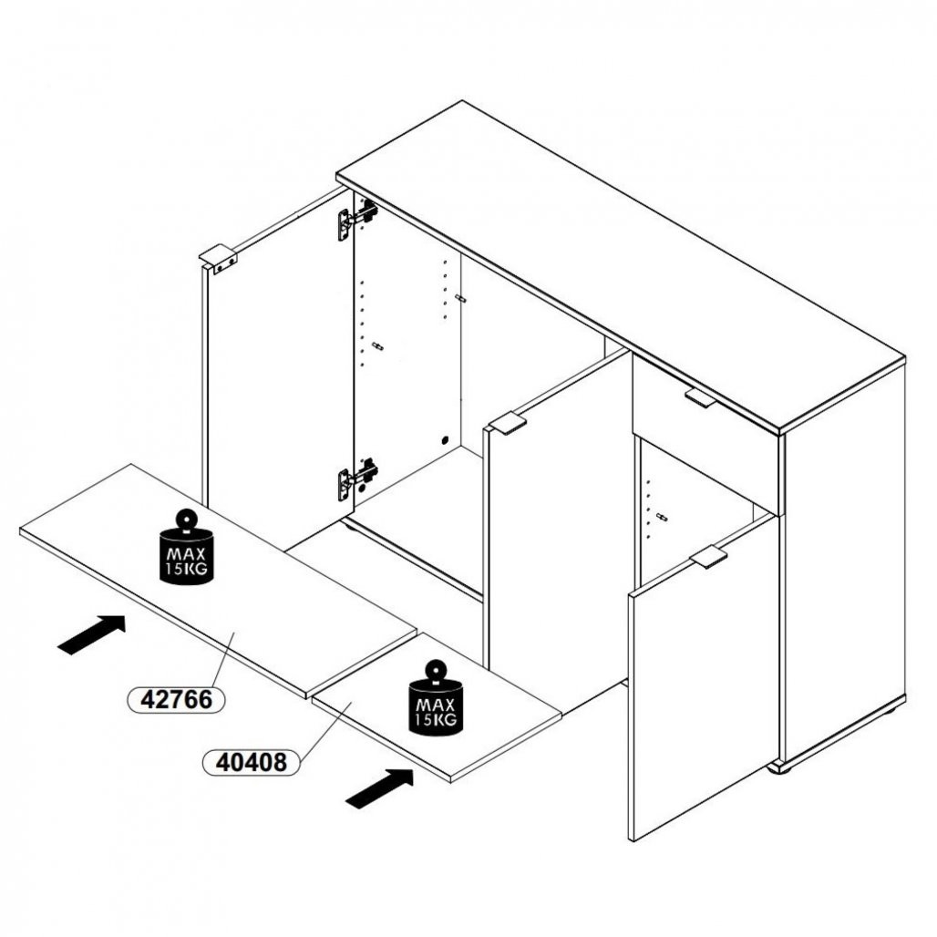 - Gornja ploča komode može izdržati opterećenje do 40 kg.