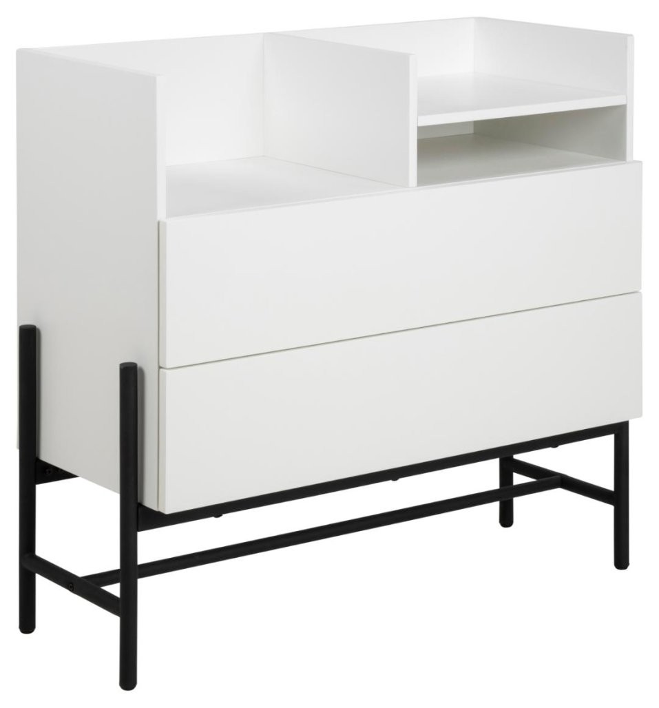 Prodajemo elegantno dizajniranu komodu Harbor. Ova komoda ima metalne utore za lako otvaranje i zatvaranje ladica. Jedna od njenih glavnih prednosti je otvoreni pretinac koji pruža dodatni prostor za pohranu ili za ukras vaše sobe.