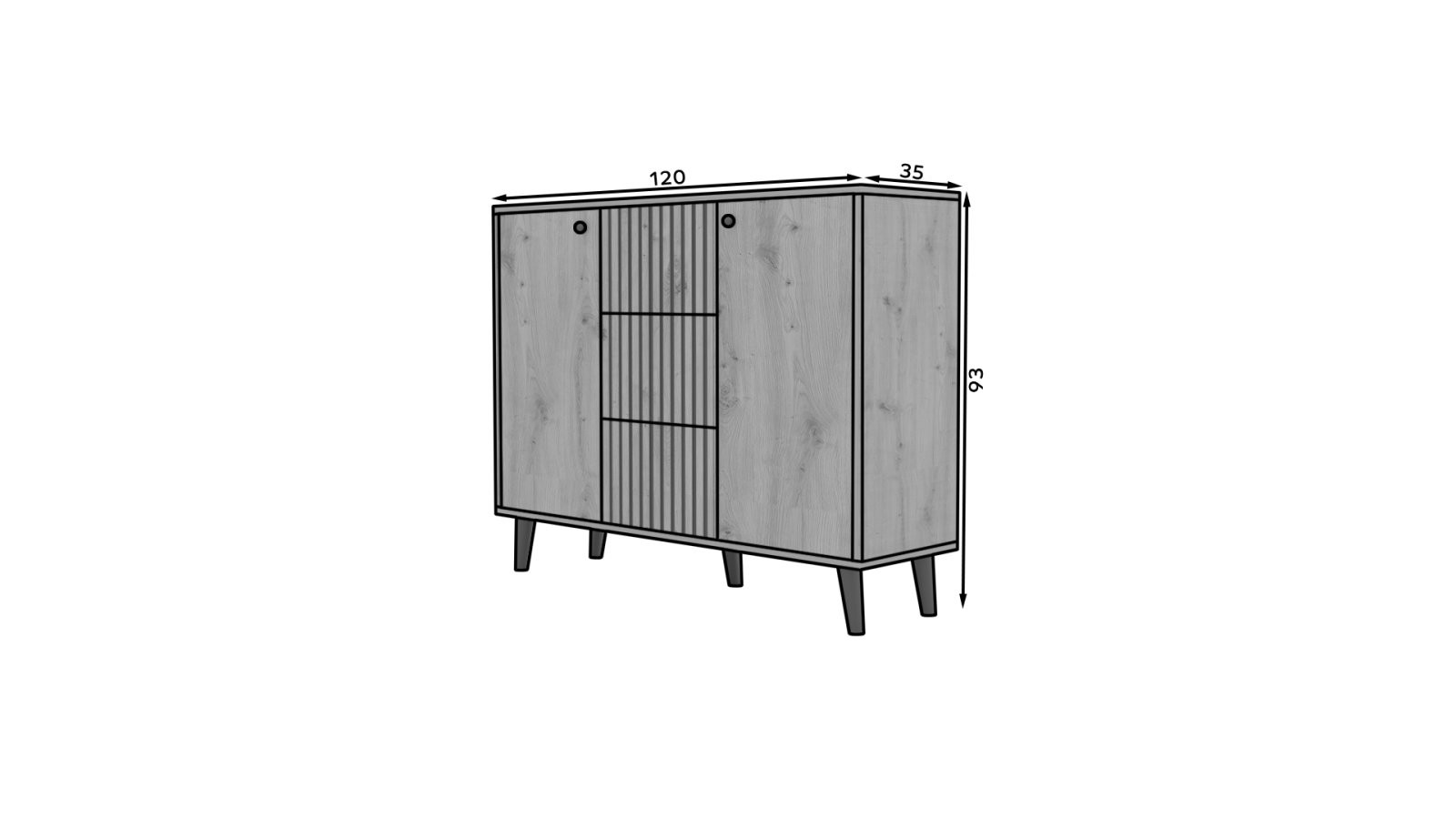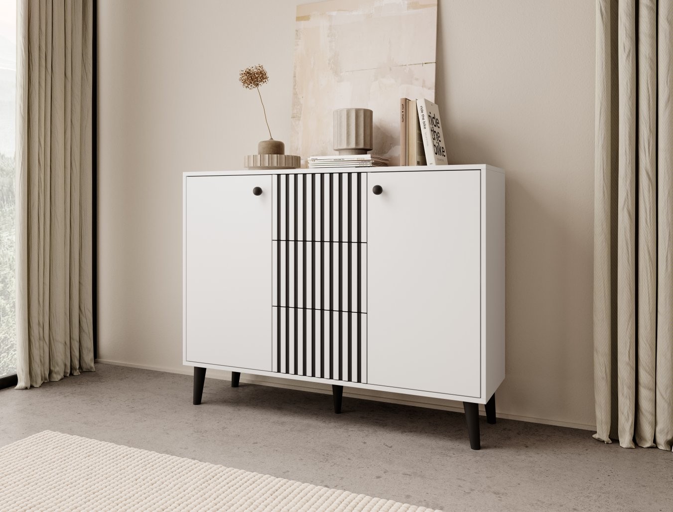 Komoda IKA savršen je odabir za one koji traže funkcionalan i estetski privlačan komad namještaja. Svojim minimalističkim dizajnom i laganom formom odlično se uklapa u dnevni boravak, spavaću sobu ili hodnik.