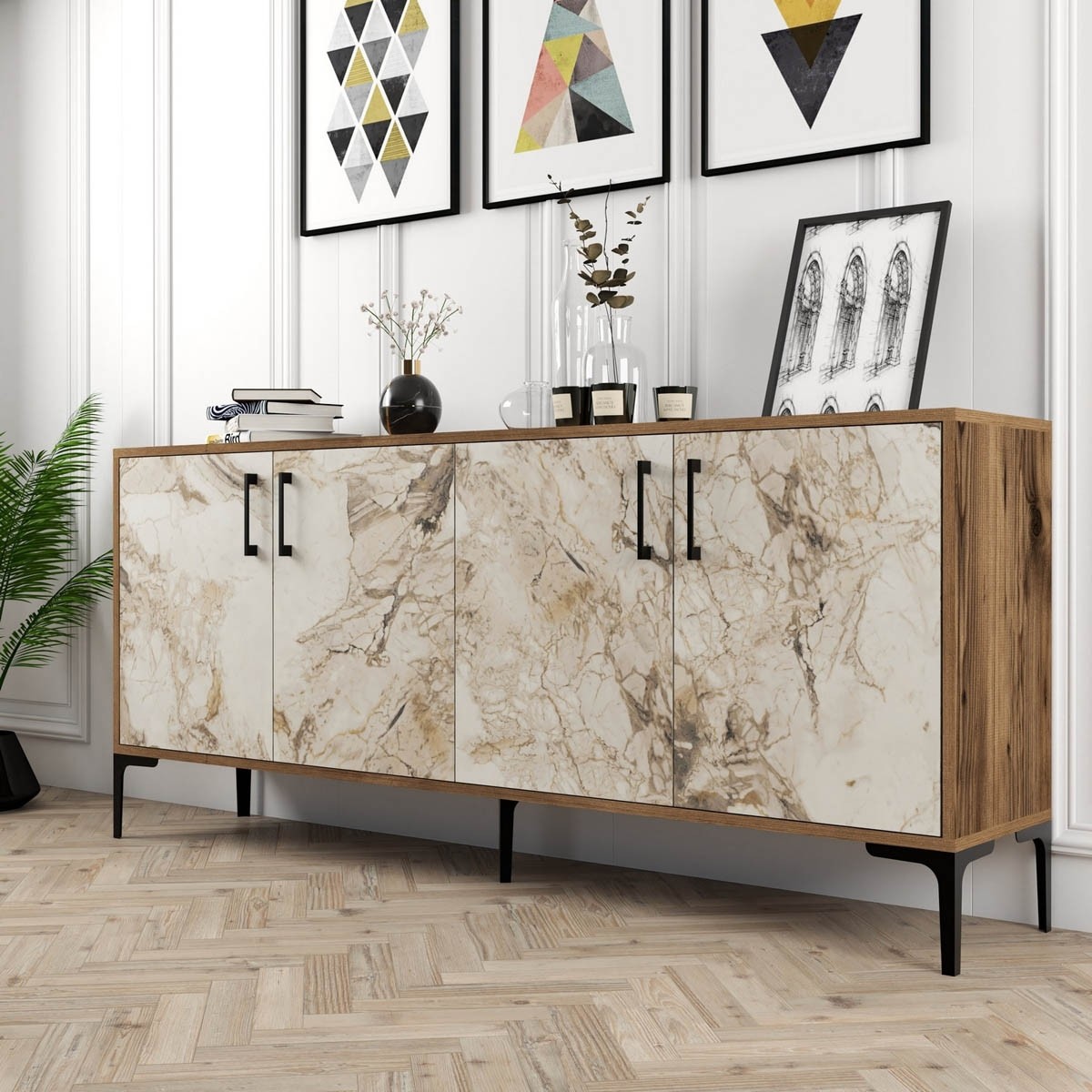 Dvodijelna komoda KIEV 2 je idealan izbor za svakoga tko traži elegantan i funkcionalan komad namještaja kako bi uljepšao vaš prostor. Imitacija mramora na vratima komode pruža sofisticirani izgled koji će zasigurno privući pažnju svakoga tko uđe u vaš dom.