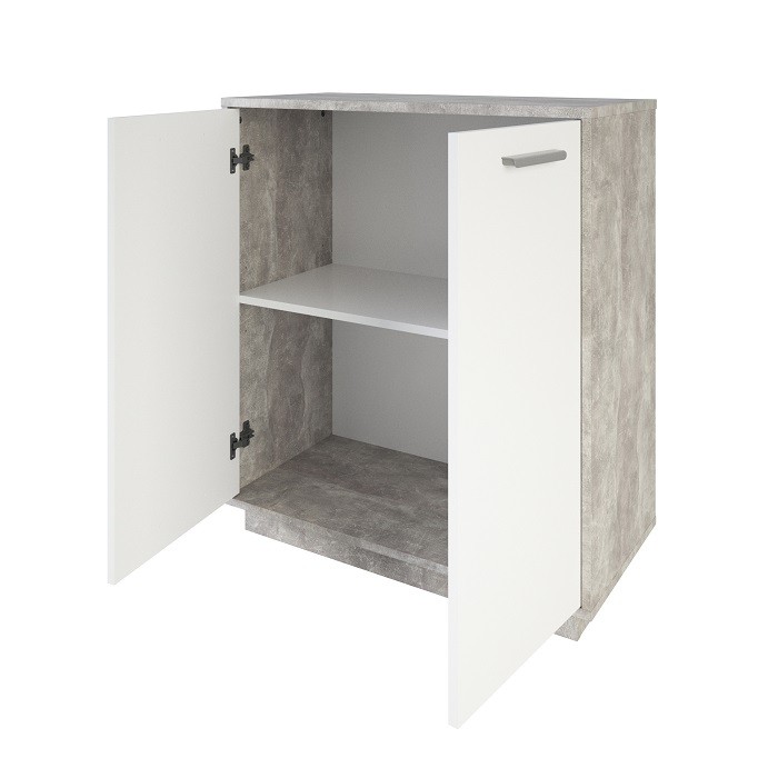 Komoda LEO 309103 je komoda u kombinaciji bijele boje i imitacije cementa. Ima dvoja vrata i u unutrašnjosti policu, koju možete podesiti na tri različite visine. Pogledajte si još ostale elemente iz programa Leo.