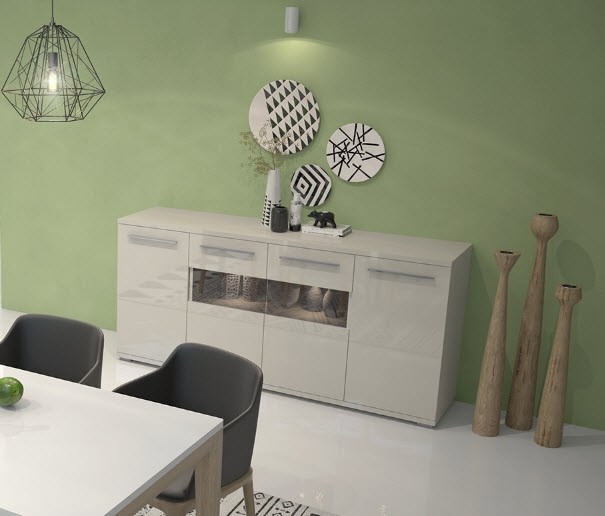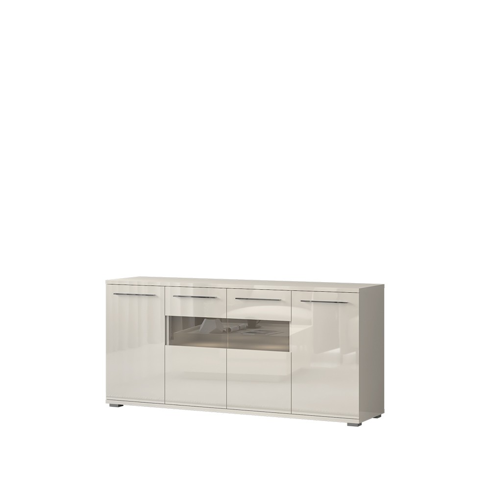 Komoda Radda Piano uključuje i LED rasvjetu, koja poboljšava izgled komode, te još više istakne dekorativne elemente iza stakla. Podjeljena je na četiri vrata, a uključuje i šest unutarnjih polica, te vam tako nudi obilo prostora za dobru organizaciju vaših dragocjenih predmeta. Izrađena je od oplemenjene iverne ploče, a vanjski djelovi premazani su UV lakom, koji je od ostalih lakova čak 4 puta otporniji na oštećenja te ogrebotine. Komoda je dio modularnog namještaja Radda Piano, stoga pogledajte još ostale artikle ove kolekcije!