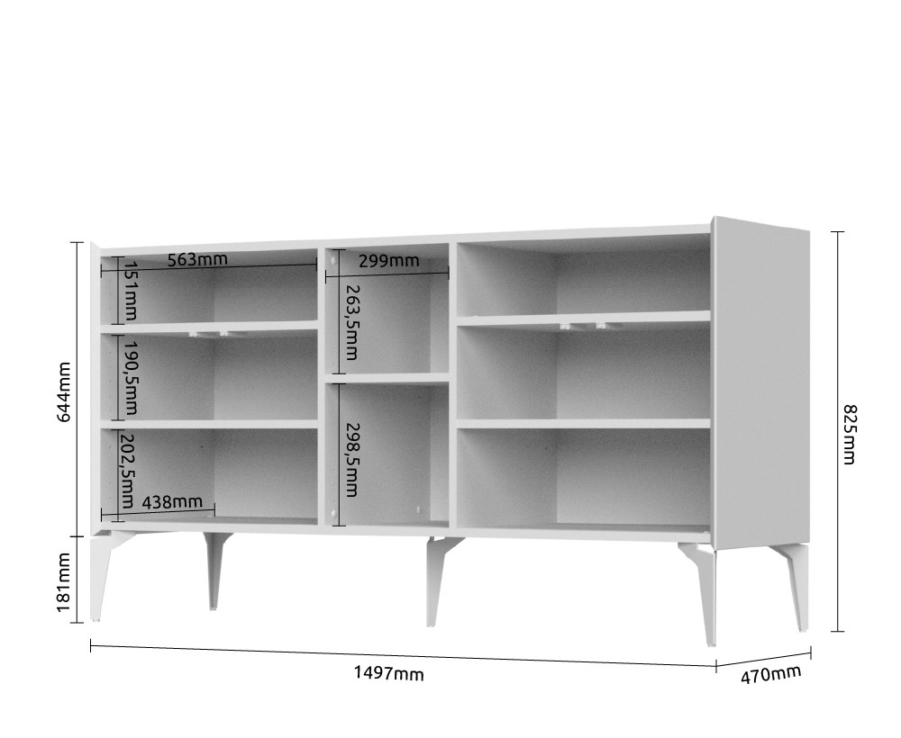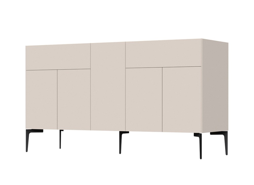 Počastite se prekrasnom komodom SKY 45 koja će unijeti svježinu u vaš prostor. Komoda sadrži dvije ladice i pet vrata, koji služe kao spremište i održavaju vaš dnevni boravak ili spavaću sobu čistom i organiziranom. Noge su metalne i pružaju stabilnost, a komoda je dostupna u kašmir mat laku.