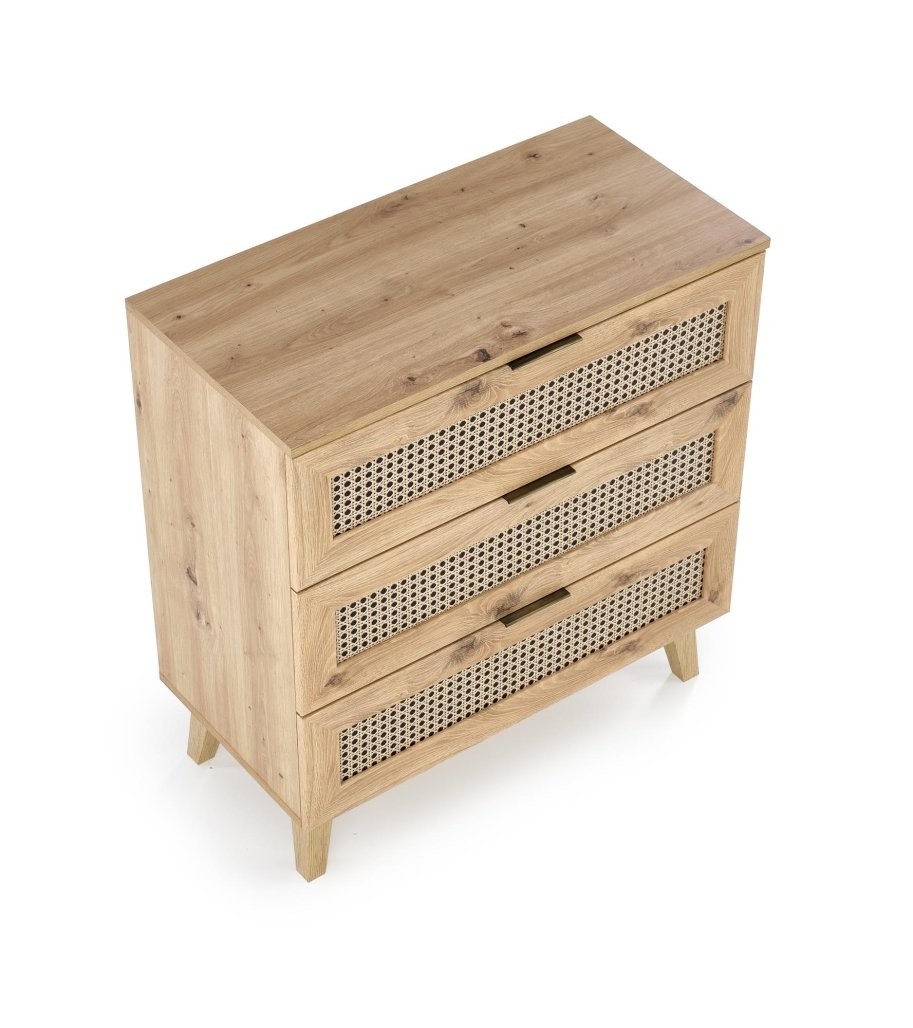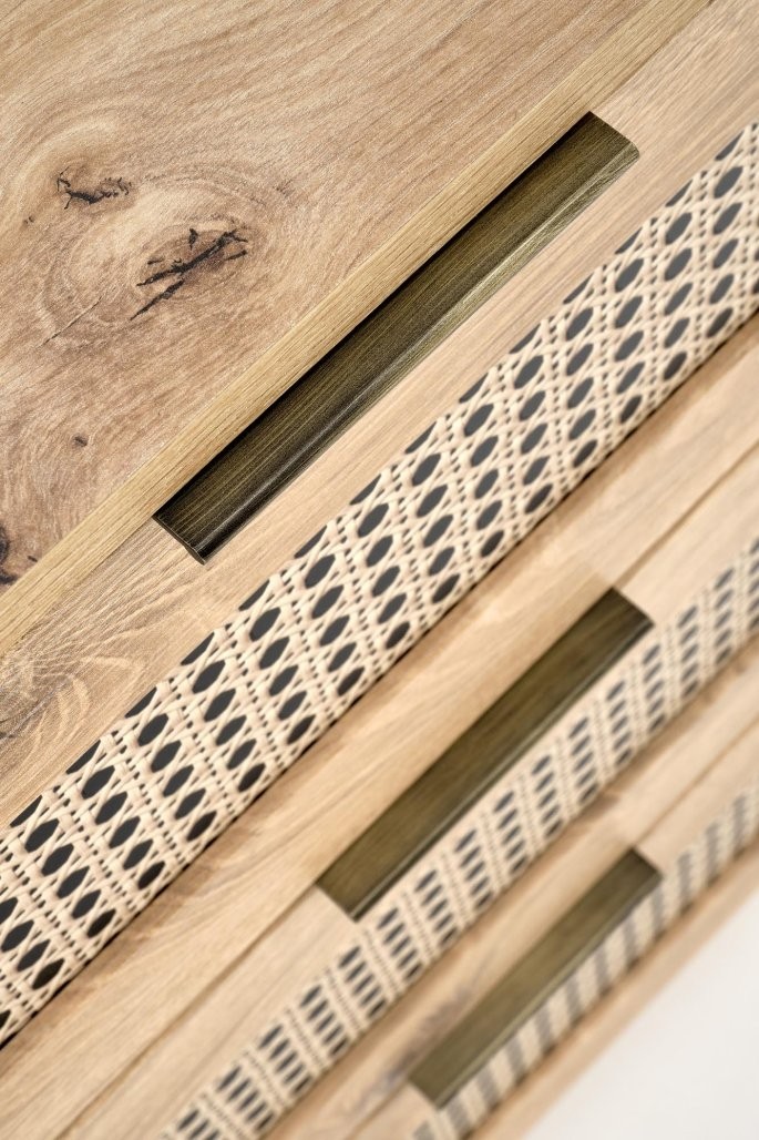 Komoda Telar spaja moderan i skandinavski stil u elegantnoj kombinaciji crnog drveta i hrasta i je savršena za organizaciju dnevnog boravka ili spavaće sobe.