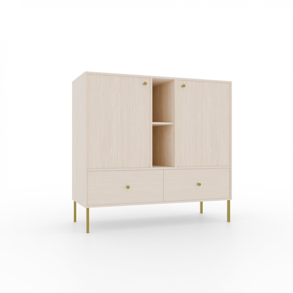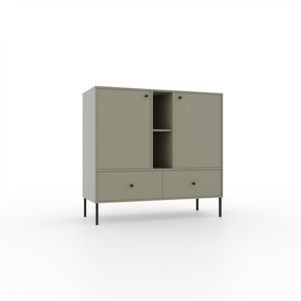 Komoda Tili s 2 vrata i 2 ladice je moderno dizajniran komad namještaja koji spaja funkcionalnost i estetiku. Zahvaljujući pažljivo odabranim bojama i elegantnom izgledu, savršeno se uklapa u spavaće ili dnevne sobe različitih stilova.