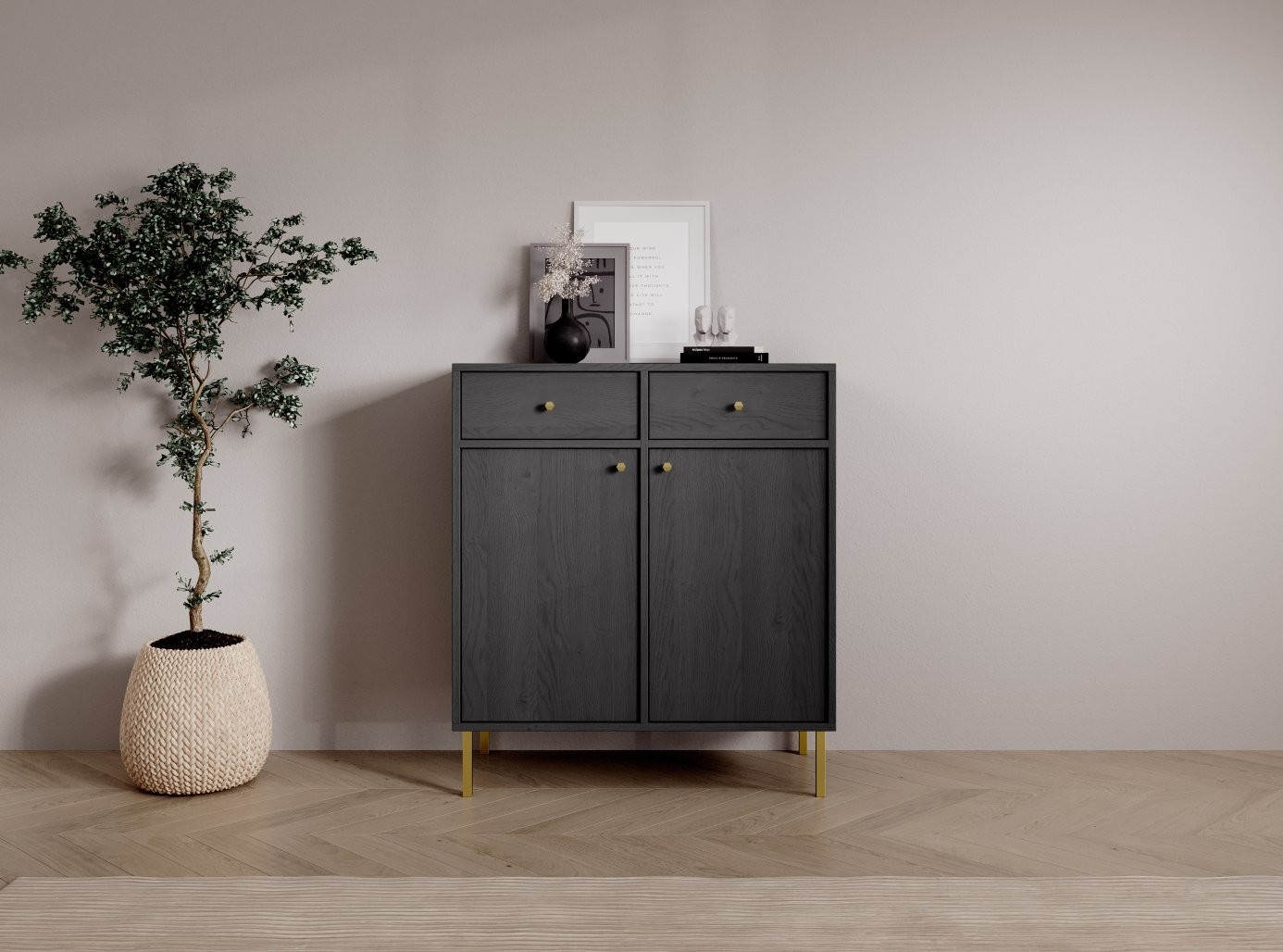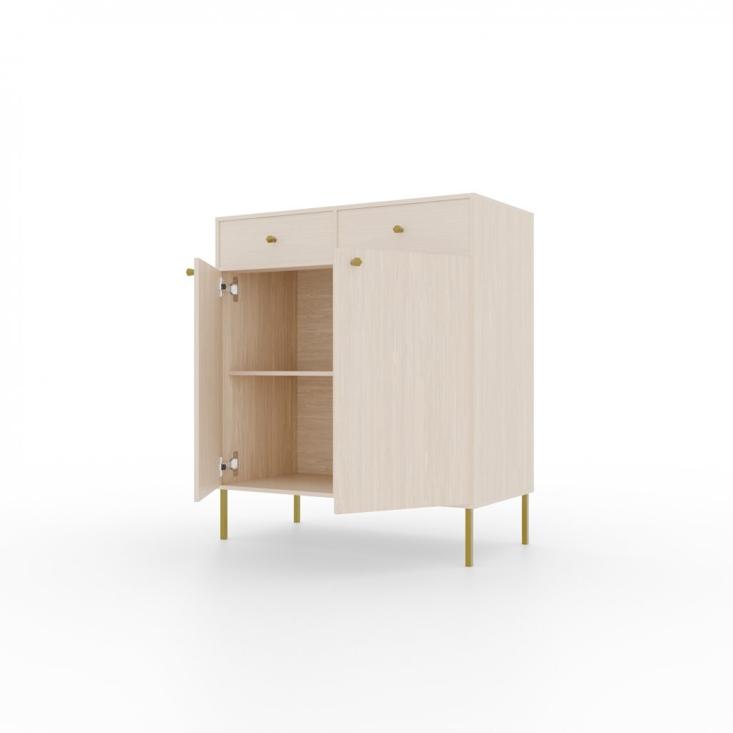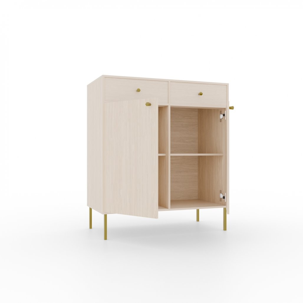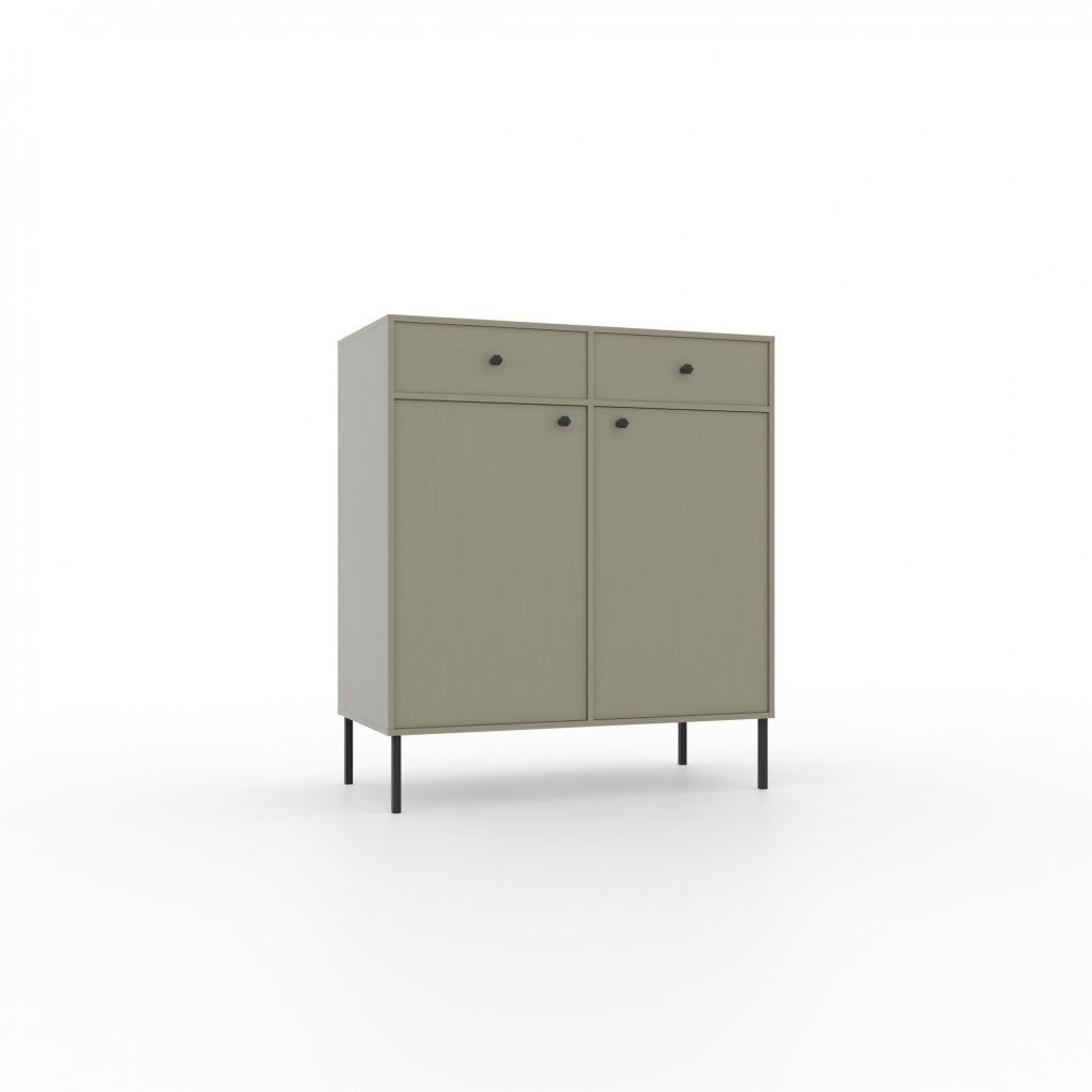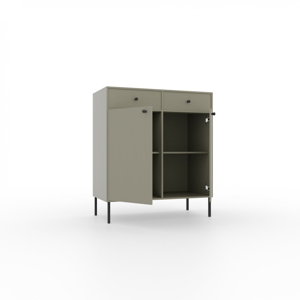 Komoda Tili s 2 vrata i 2 ladice moderna je i elegantna opcija za pohranu, savršena za spavaće ili dnevne sobe. Zahvaljujući pažljivo odabranoj paleti boja i profinjenom dizajnu, lako se uklapa u različite interijere.