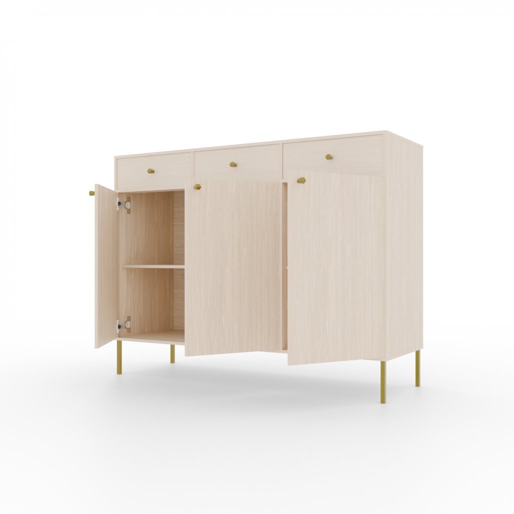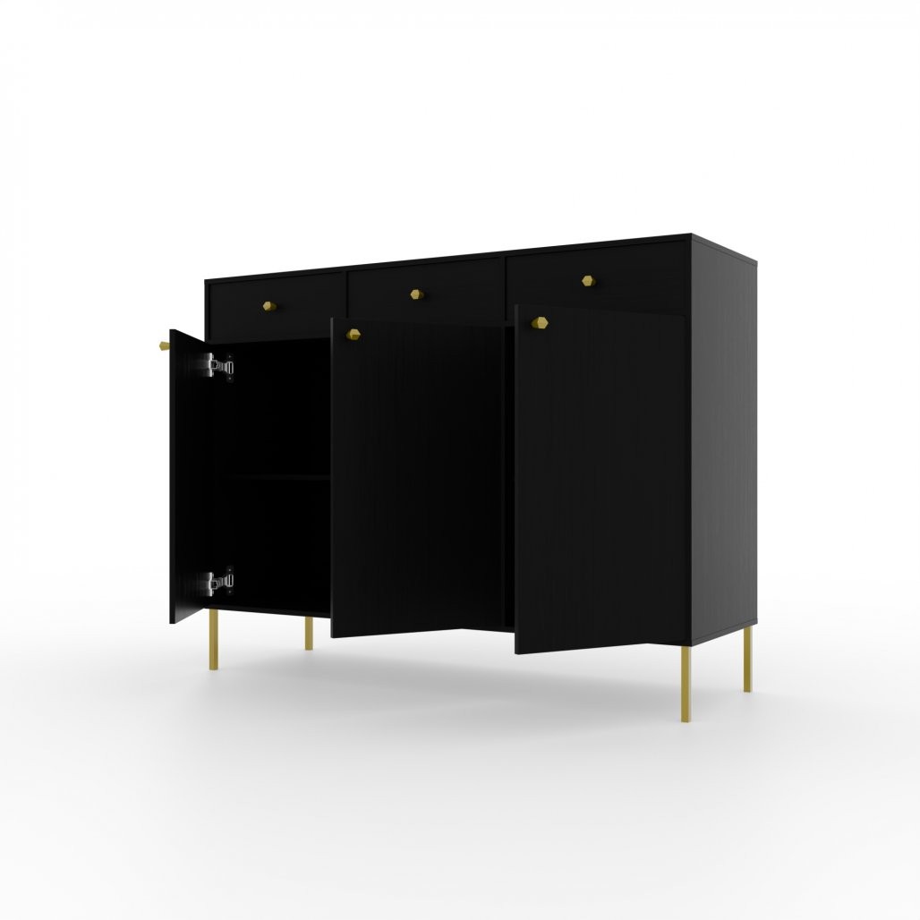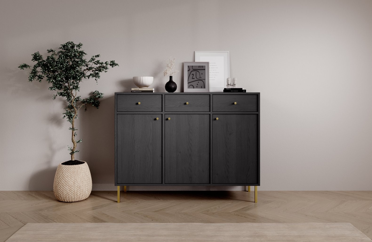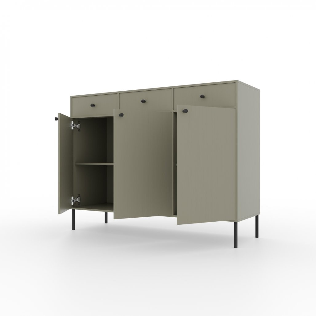 Komoda Tili s 3 vrata i 3 ladice je moderan i elegantan komad namještaja, savršen za spavaće i dnevne sobe. Dizajnirana je za one koji cijene funkcionalnost, estetiku i mogućnost prilagodbe prostoru.