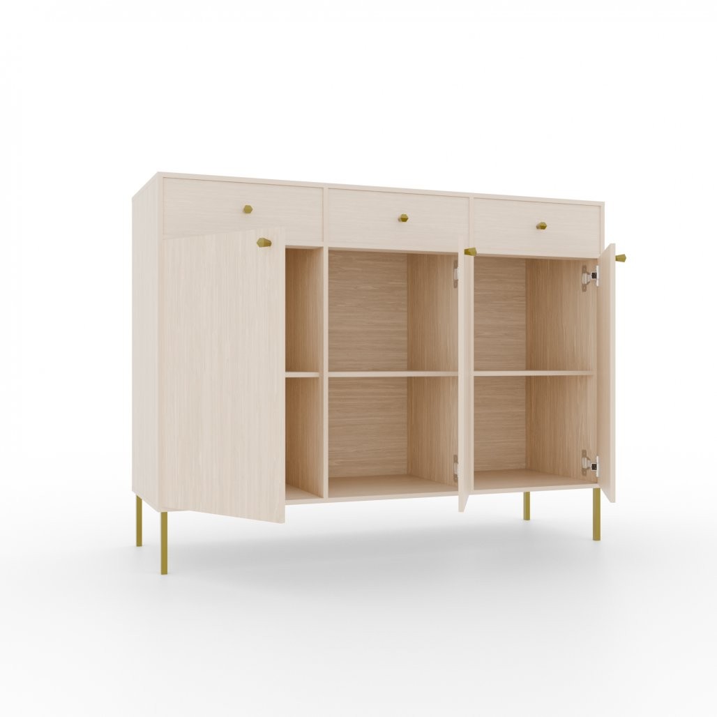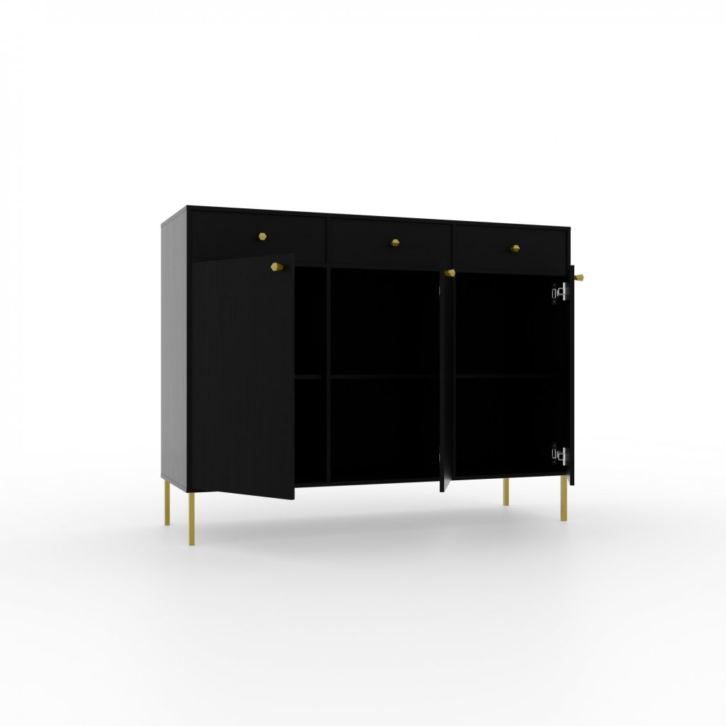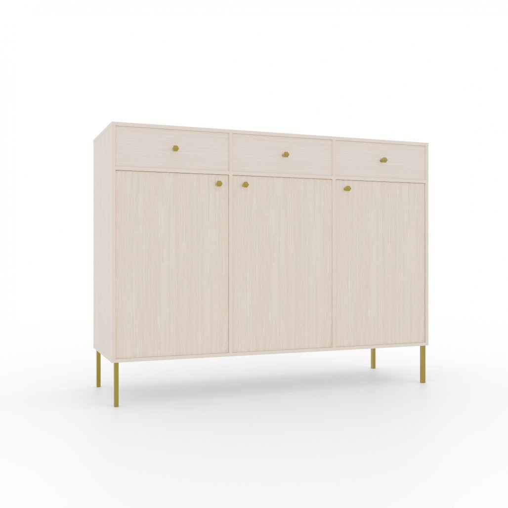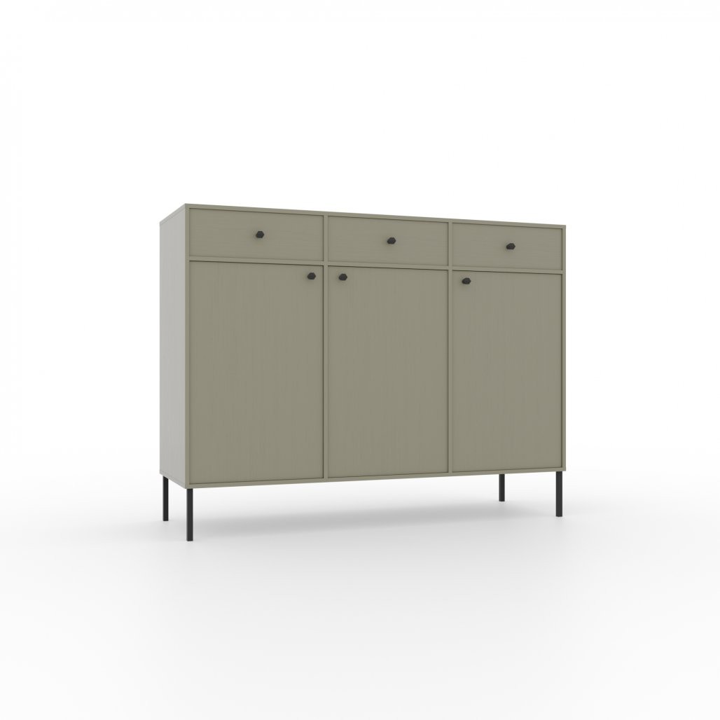 Komoda Tili s 3 vrata i 3 ladice je moderan i elegantan komad namještaja, savršen za spavaće i dnevne sobe. Dizajnirana je za one koji cijene funkcionalnost, estetiku i mogućnost prilagodbe prostoru.