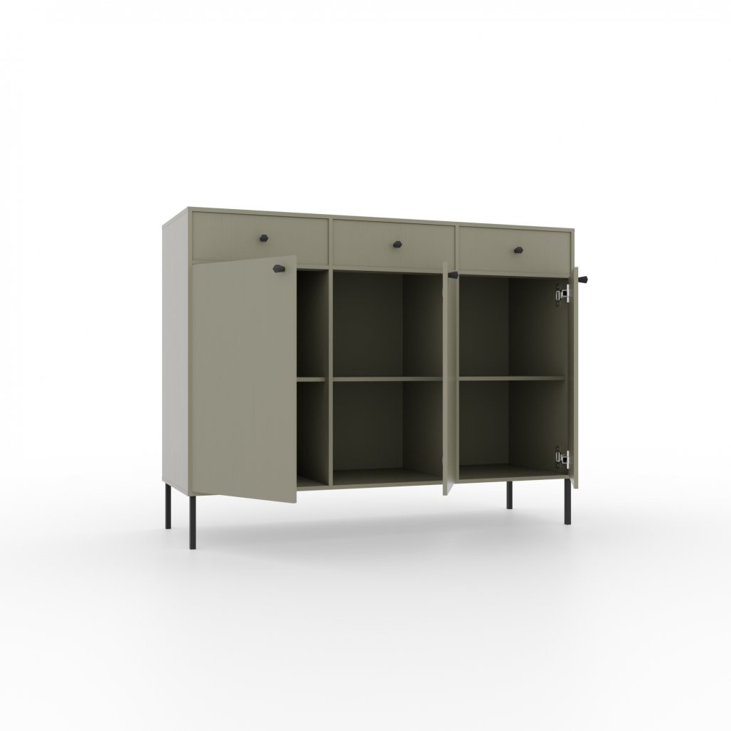 Svaka boja ima svoj karakter: crna za moderan izgled, bež za toplinu i prirodan ugođaj, a eukaliptus za svježinu i prirodni šarm. Komoda Tili je savršen izbor za sve koji traže praktično i estetski privlačno rješenje za pohranu.