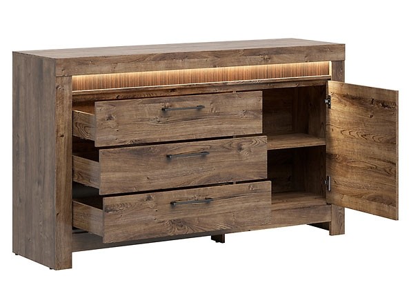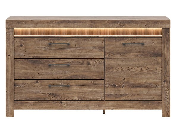 Moderna i praktična komoda TORIN dostupna je u boji hrasta ribbeck i savršeno se uklapa u svaki dnevni boravak. Komoda sadrži puno prostora za pohranu, što će vam pomoći da dnevni boravak bude uredan.