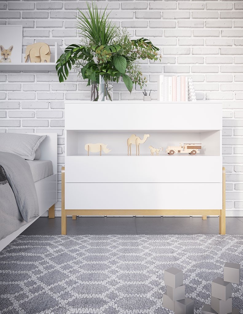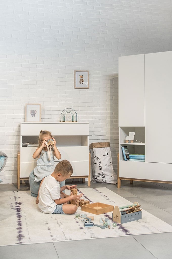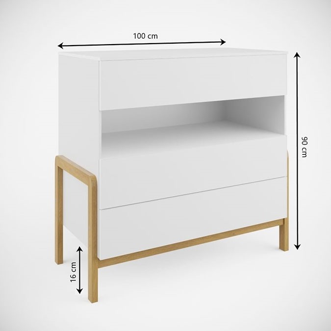 Priuštite si modernu VIVAN komodu u skandinavskom dizajnu, koju možete koristiti u svakoj prostoriji svog doma, jer ima univerzalni izgled koji ide svugdje. Komoda se može koristiti u dječjoj ili omladinskoj sobi, spavaćoj sobi, dnevnom boravku ili hodniku za spremanje raznih predmeta. Komoda je podijeljena u tri prostrane ladice i jednu otvorenu policu, što vam daje dovoljno prostora za pohranu i odlaganje.