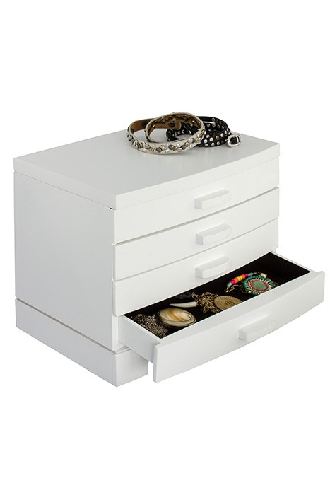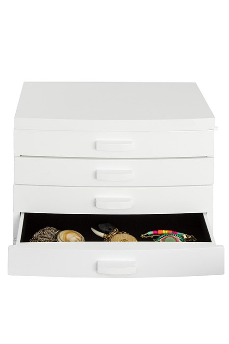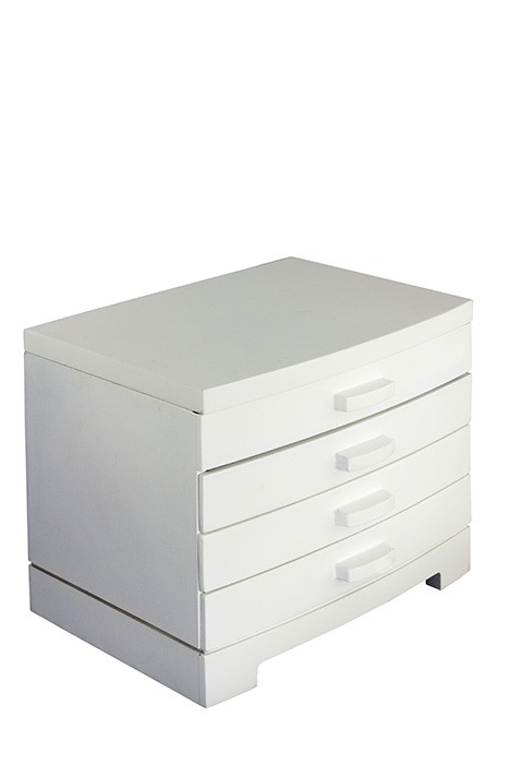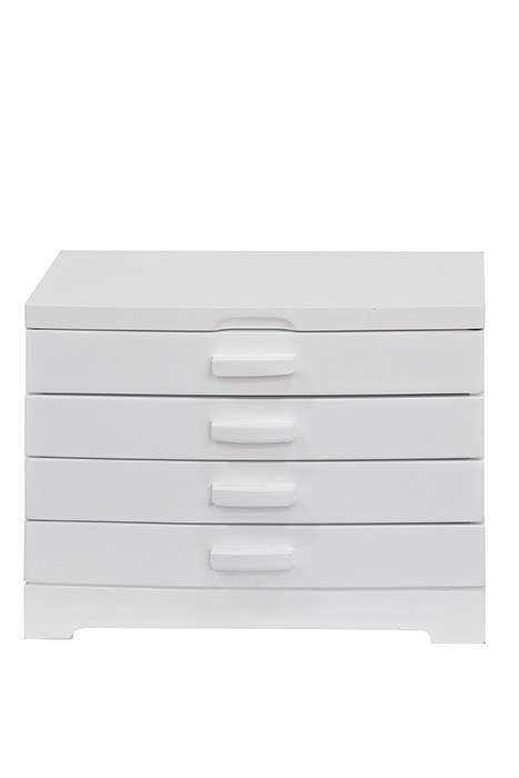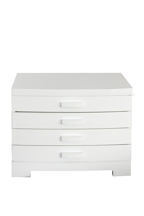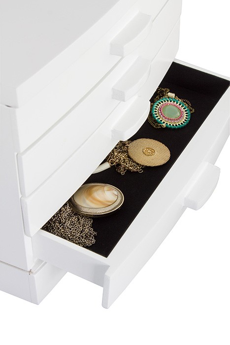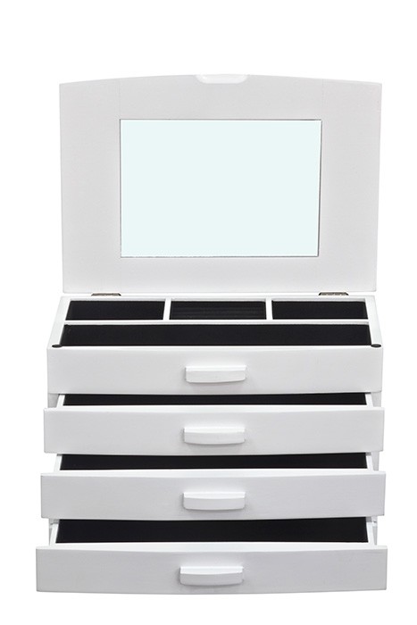 Komoda za nakit NADIA s ogledalom u bijeli boji je idealno mjesto za pohranjenje vašeg nakita te šminke i obavezan je dodatak u vaši spavaći sobi. Komoda ima 3 ladice i vaš će nakit uvijek biti na svojem mjestu. S vremenom se nakupi puno skupih i malo manje skupih sitnica, tj. vašeg nakita. Naušnice, ogrlice, sati, narukvice i još bi mogli nabrajati. S tom komodom će vam nakit uvijek biti kod ruke i što je najvažnije, uvijek će biti uredan. Maksimalna opterećenost je 10 kg.