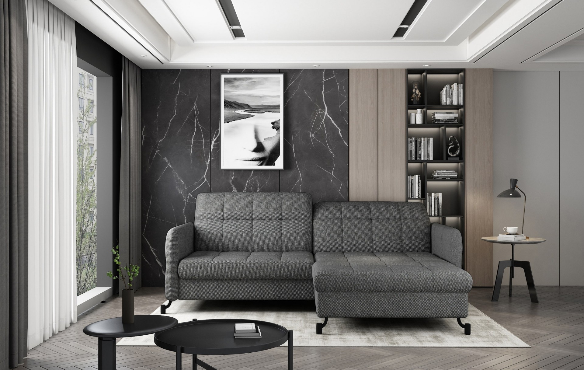 Tražite li kompaktnu sjedeću garnituru koja ne zauzima puno prostora, ali ipak nudi obilje udobnosti, praktičnu ladicu za pohranu i krevet na izvlačenje? Onda je sjedeća garnitura Lorelle idealna za vas! Dostupna je u 28 različitih boja, lijevog i desnog rasporeda, te u tkanini ili umjetnoj koži, tako da možete odabrati kombinaciju koja vam najviše odgovara i jedinstvena je.